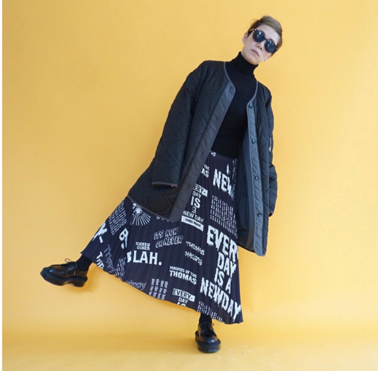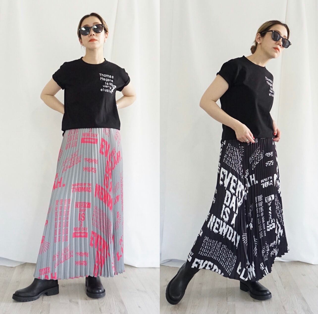 毎シーズンベストセラーのプリーツスカートです。体型が細くみえ、合わせやすくユーズフルであるとマグパイでは人気で定番化しています。オリジナルプリントロゴで生地から作っています。プリーツが取れにくいポリエステル素材。プリーツは永久的な加工ではありませんが、経年でプリーツが取れてしまったという声は上がっていないため安心して着ていただけると思います。3枚はぎになっています。一部バイアスになっているため、裾のラインにアシンメトリーな緩やかなカーブがでます。あらかじめご了承ください。(モデル着用画像参照)