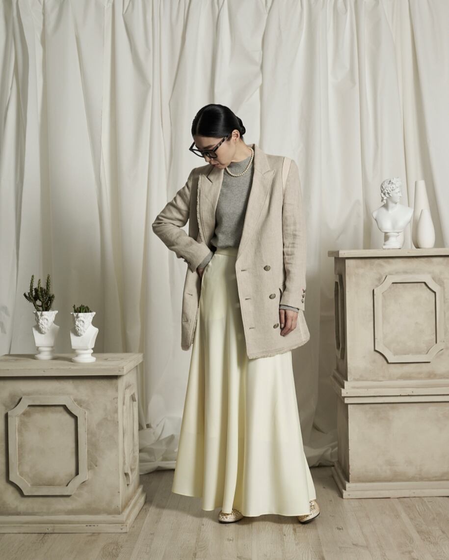 最近の日本の夏は異常な暑さです。少し暑い日でもジャケットがとても着たかったこの夏にデザインしました。来年の夏、あらたまった席、お食事、お出かけに使える涼しい一枚になると思います。また秋にも、春にもニットなどと重ねて着用ください。