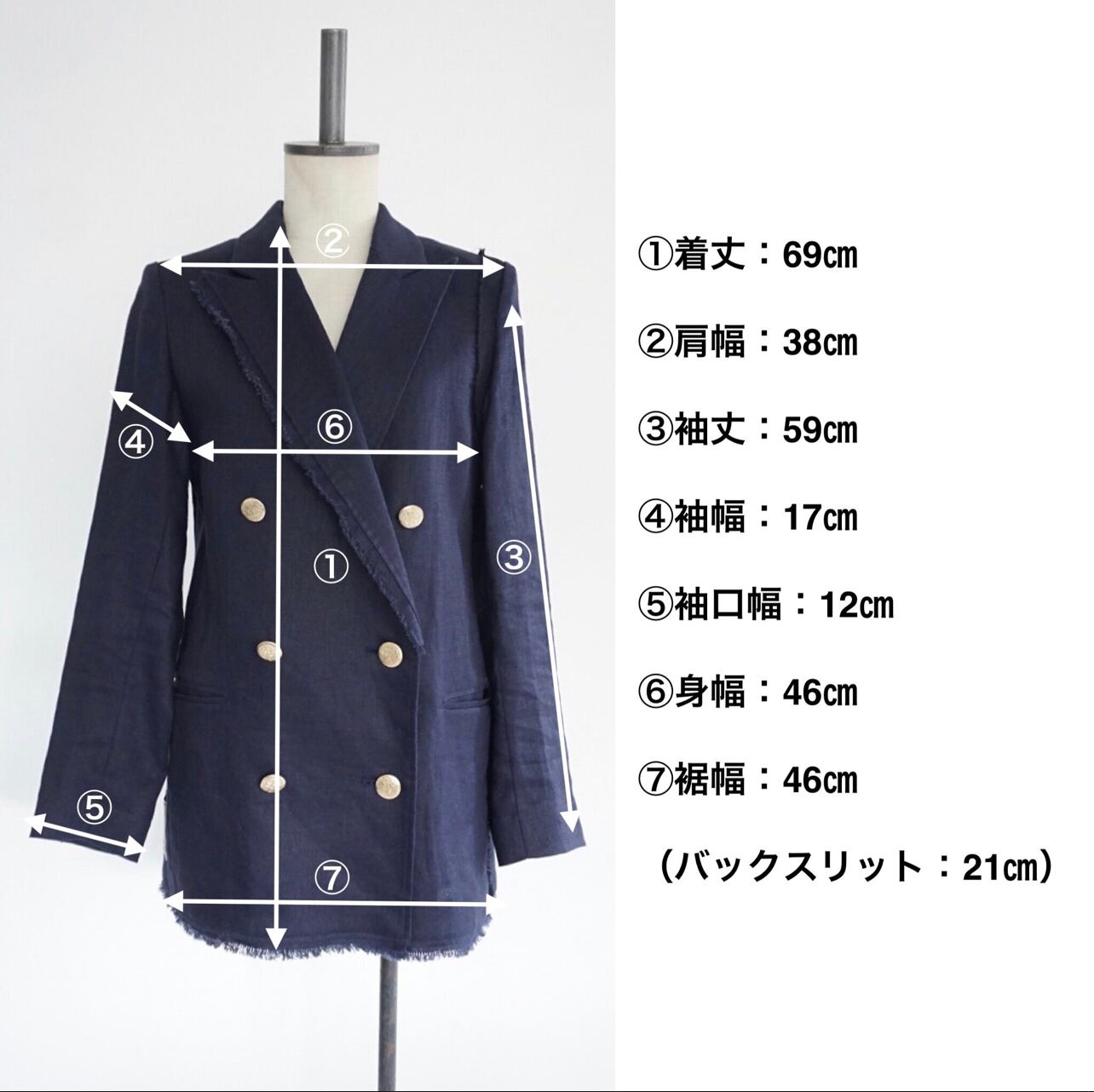 衣類は全て平台に平置きし外寸を測定しております。