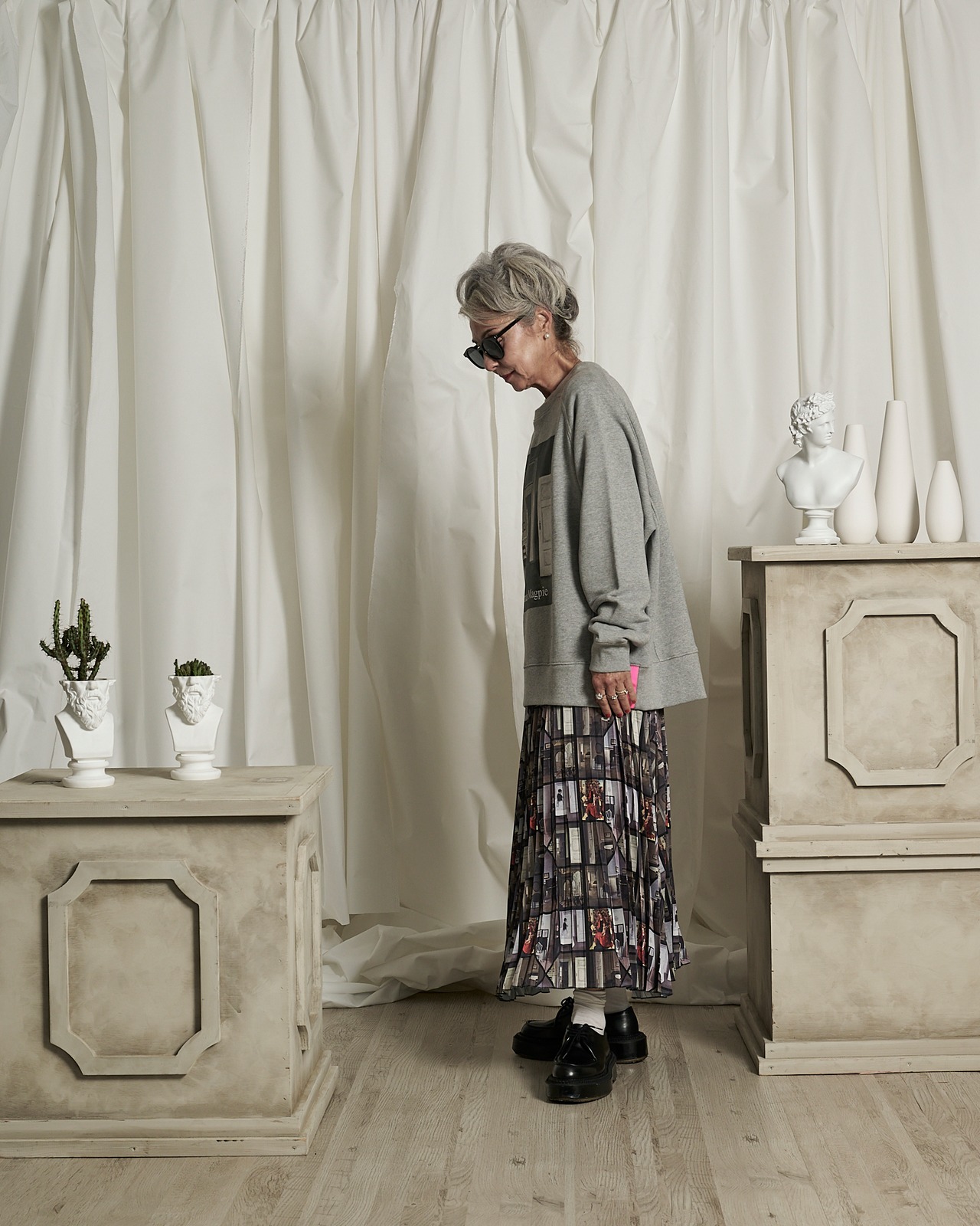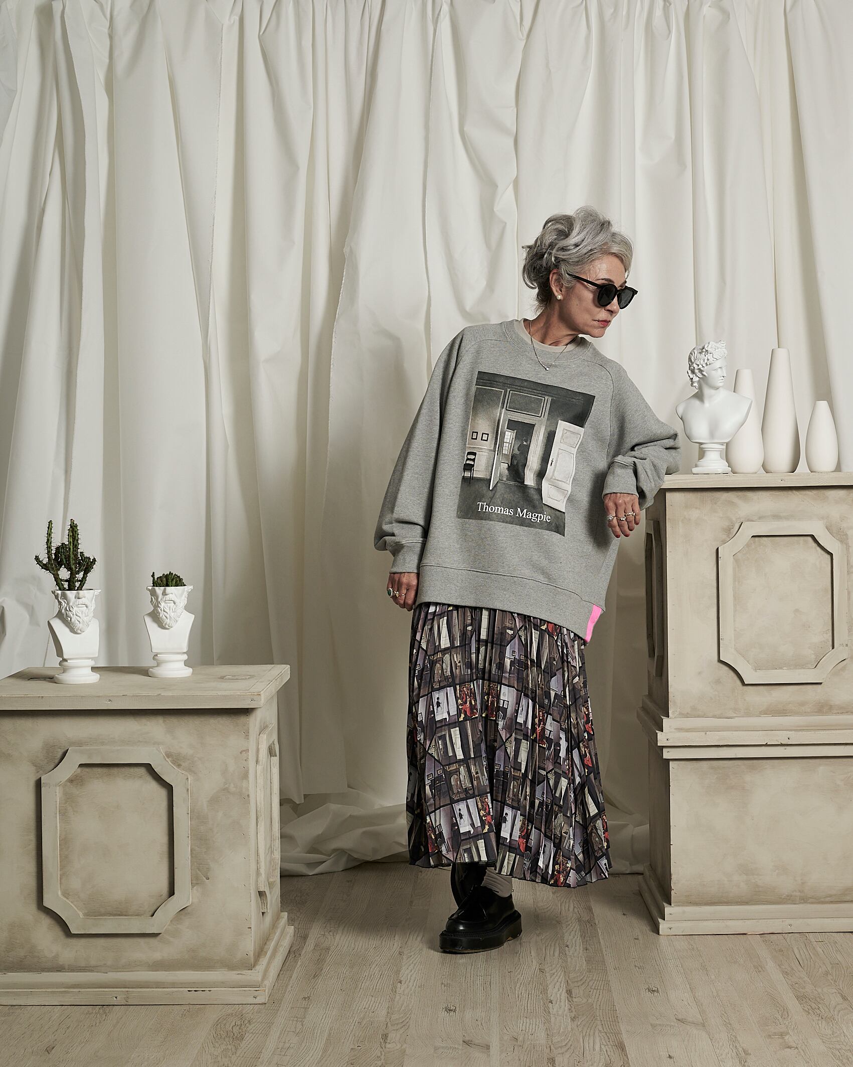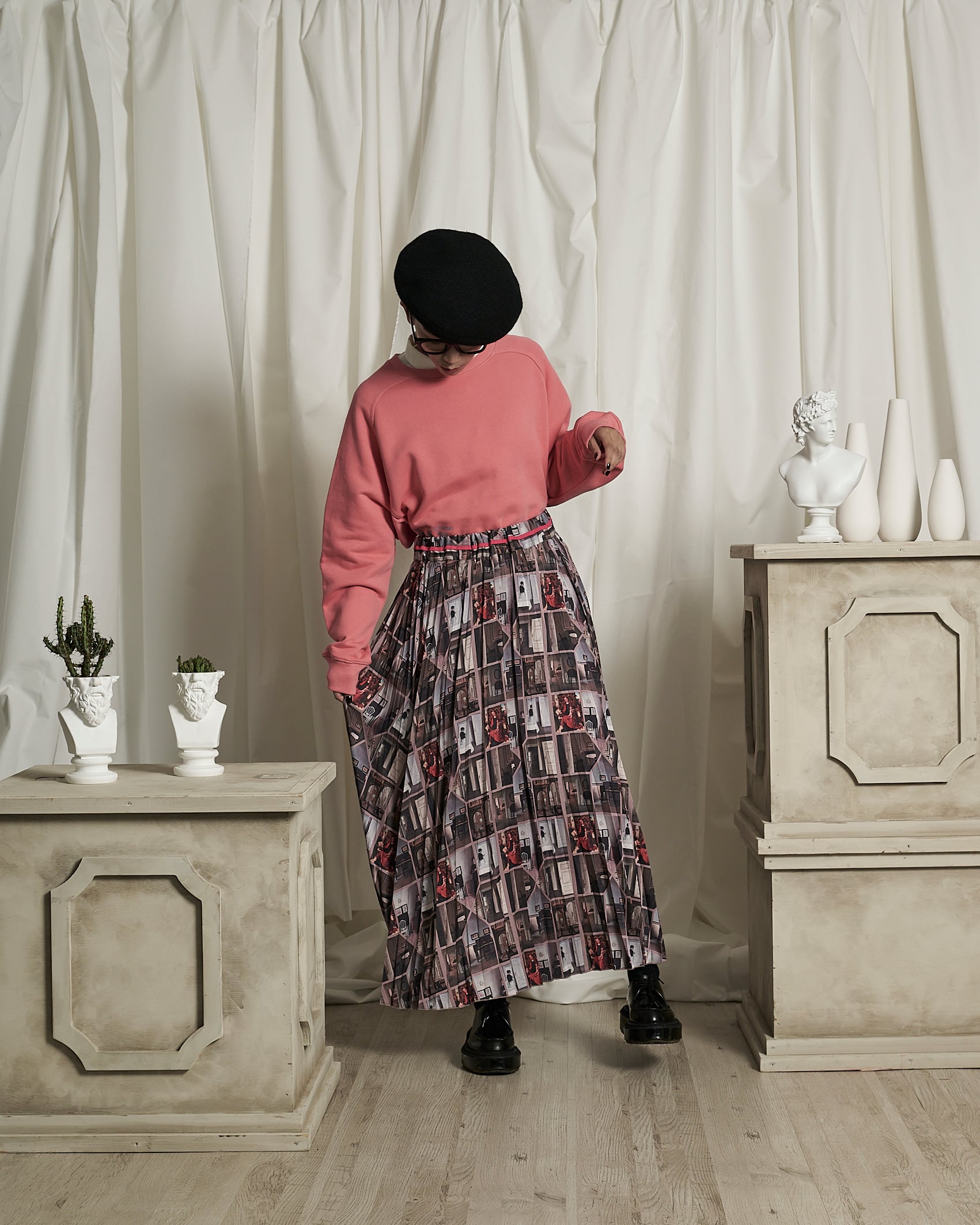 予約販売【THOMAS MAGPIE】ハマスホイ オリジナルプリント プリーツスカート (2231604) 3月お届け