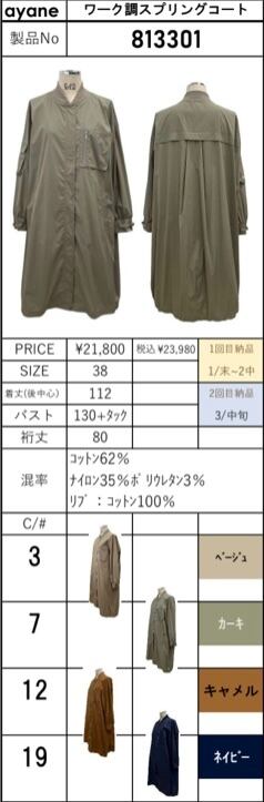 予約販売【 ayane 】ワーク調スプリングコート(813301)