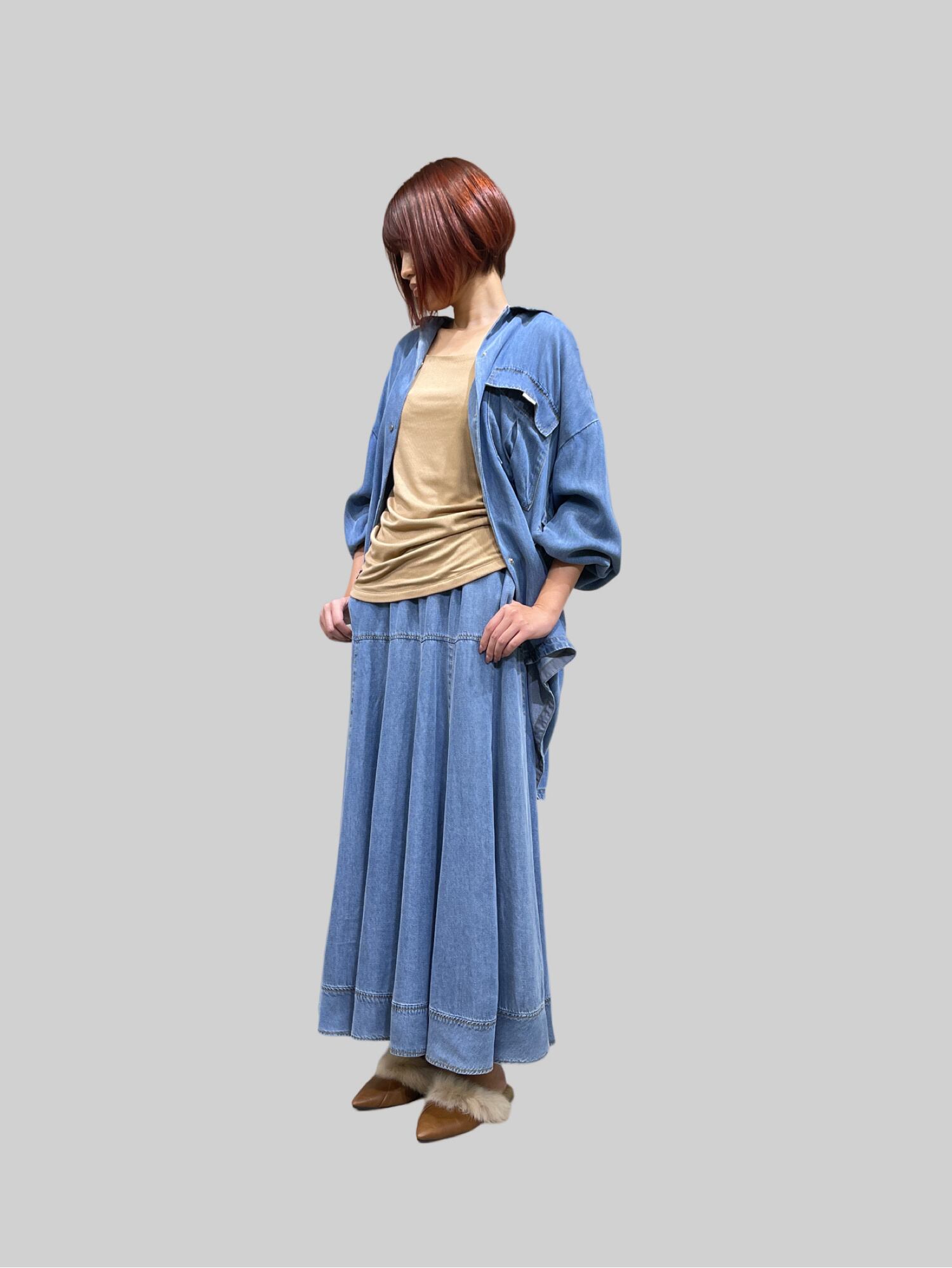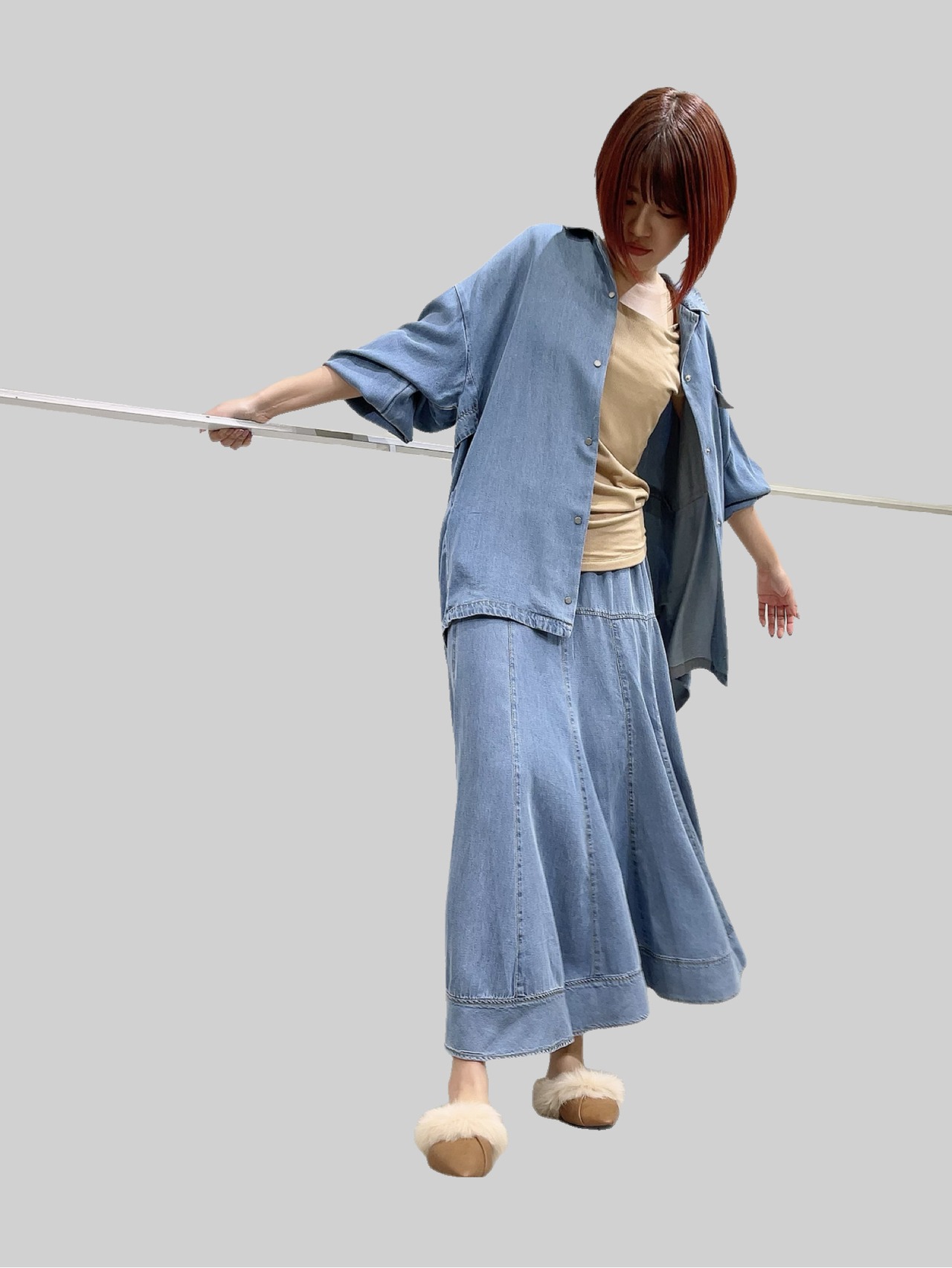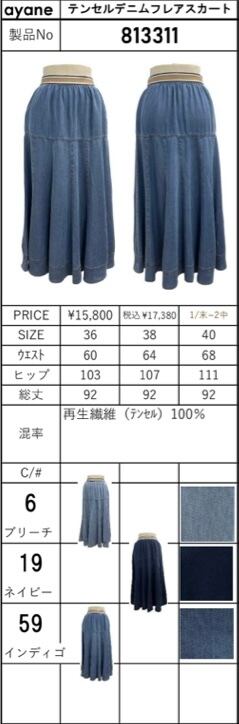 【 ayane 】テンセルデニムフレアスカート(813311)