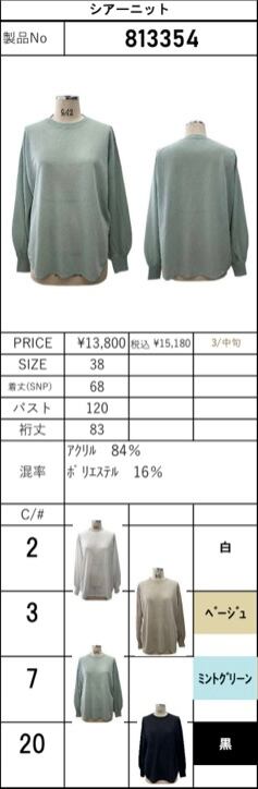 メーカー受注書に記載されている、デザイナー指示のサイズ・カラー表記を掲載しております。