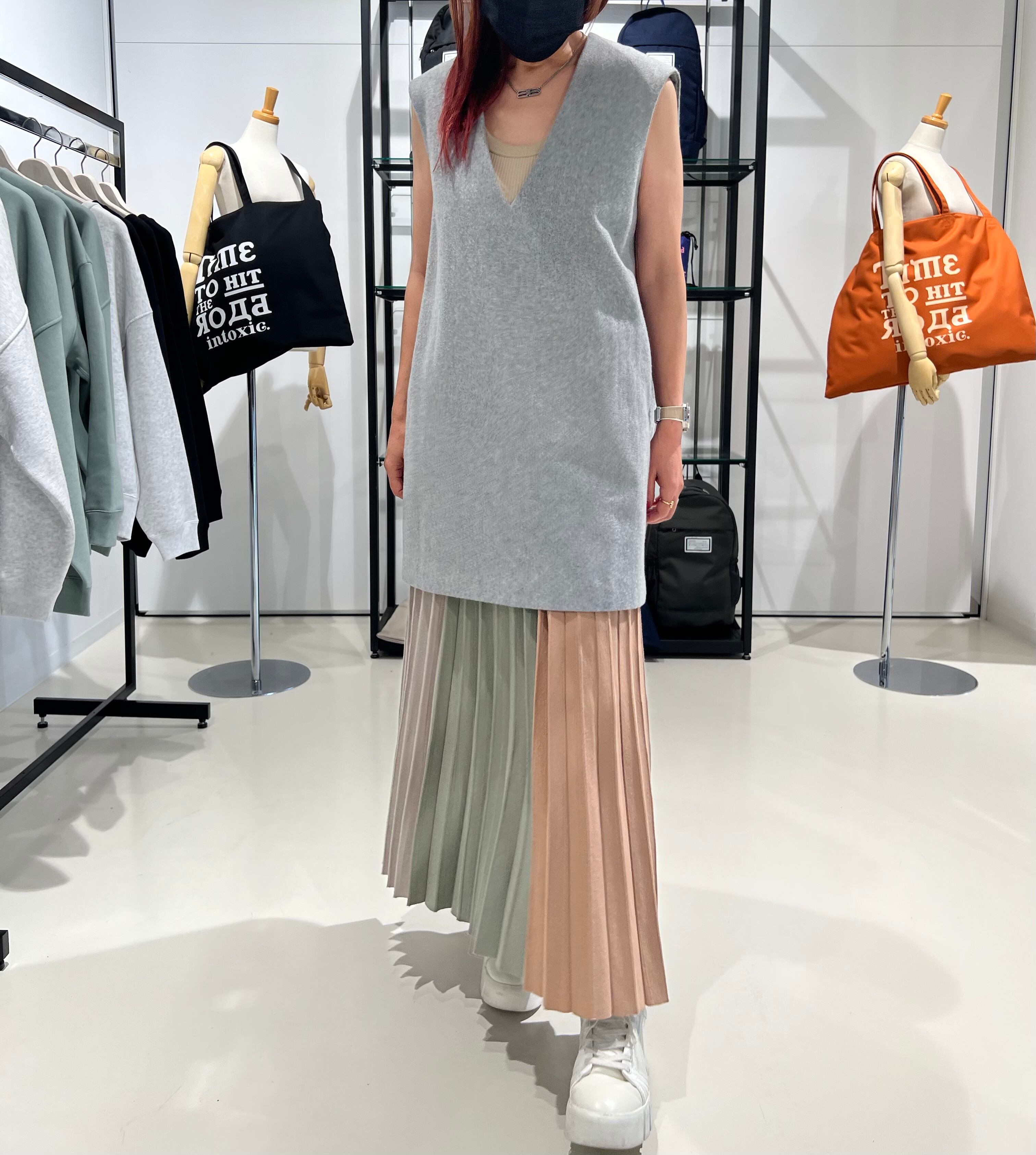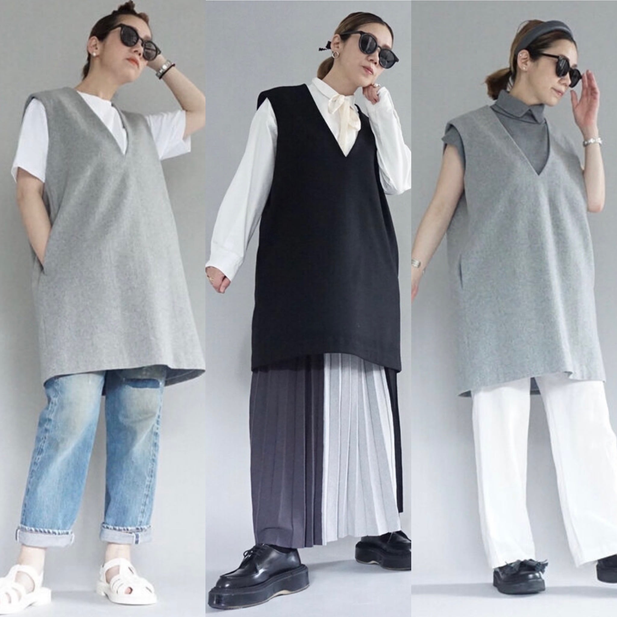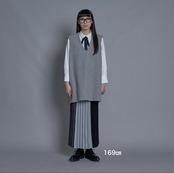 両サイドポケット付き。腰回りを隠せるオーバーサイズでゆったりとしています。膝上丈で冬はタイツで中にシャツを着てミニワンピースのように着るのもお勧めです。またパンツやロングスカートを入れて着てもベストなバランスになります。体から離れるシルエットになるためボディラインが気になる方にもお勧めです。着脱は後ファスナーで脱ぎ着がしやすくしました。