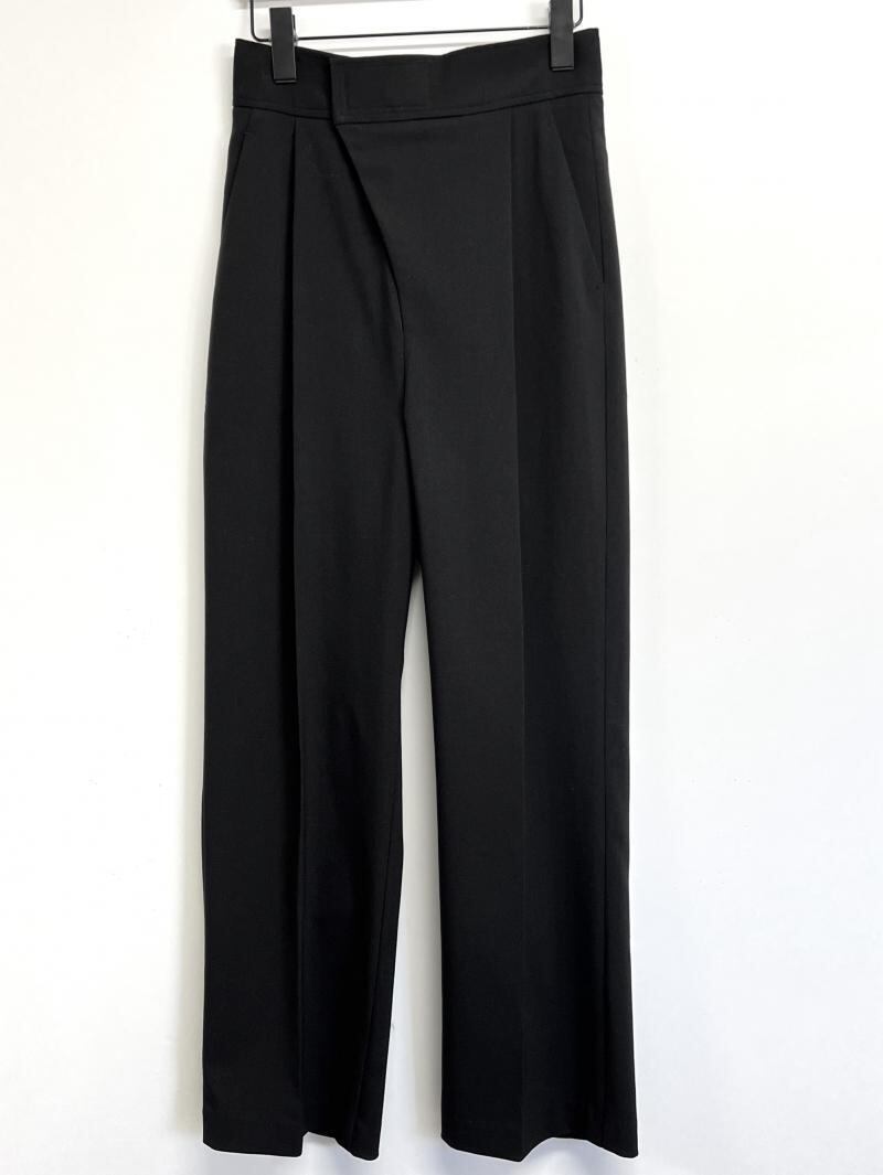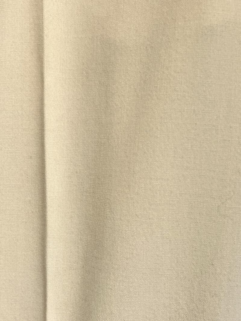 落ち感のある麻ライクの素材はシワになりにくいポリエステル混の生地で、柔らかくてごわつかない、少しきれいめな印象になります。