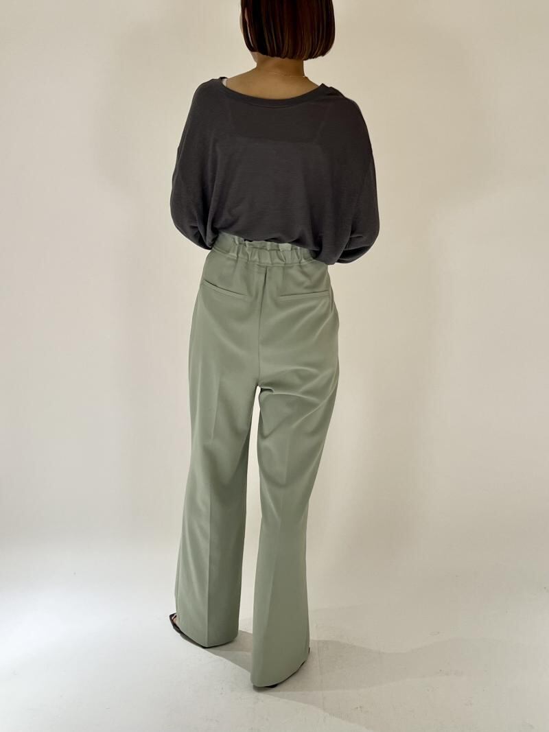 麻のカジュアルな雰囲気とポリエステルの落ち感を掛け合わせた素材は今までのパンツにない風合いで、すでにこのアイテムをお持ちのお客様にもおすすめの1枚です。