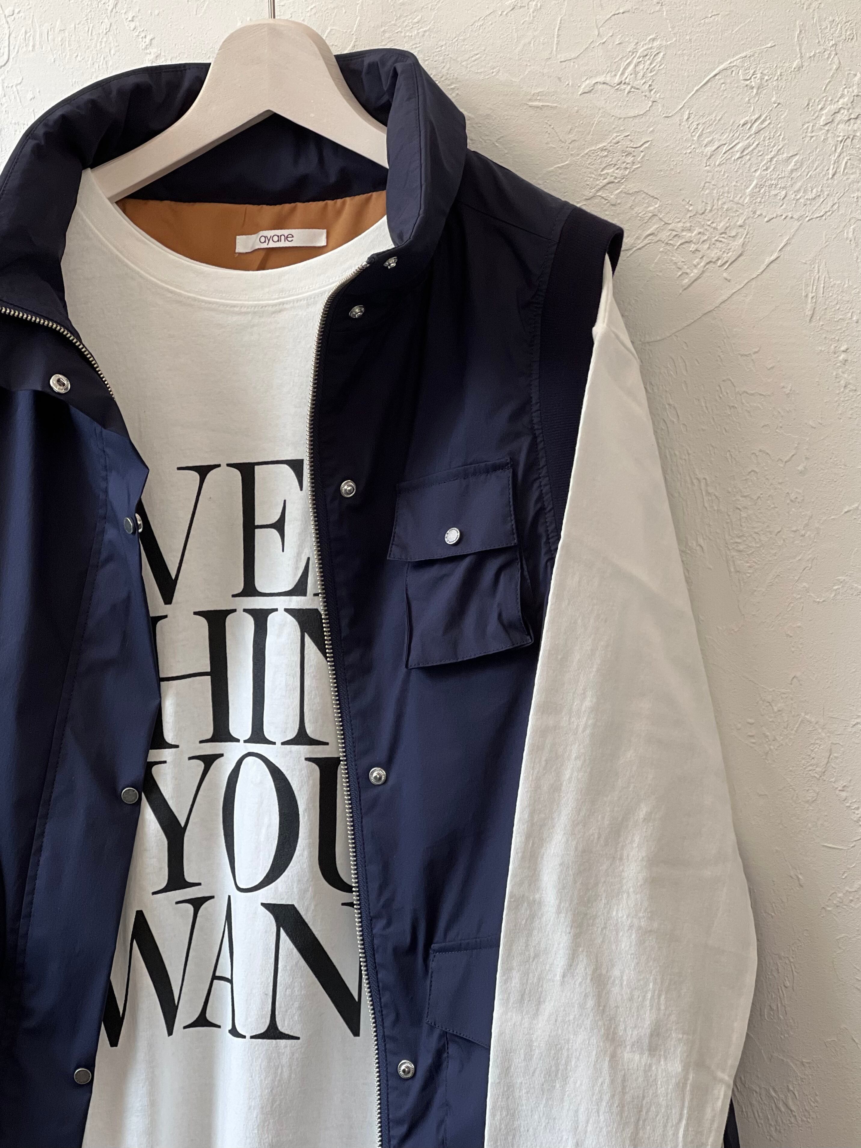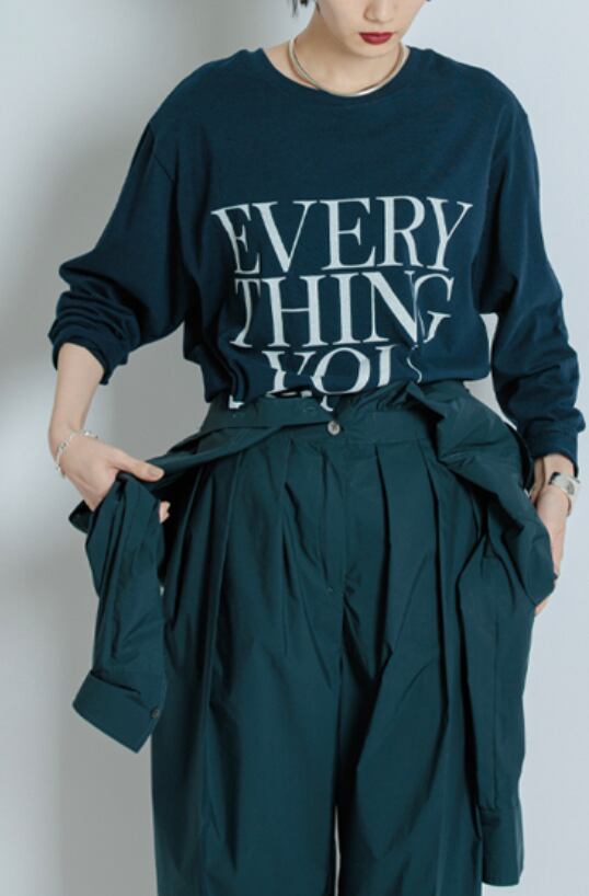 胸元の大胆なプリントで1枚でもポイントになるようなアイテムになりました。