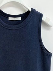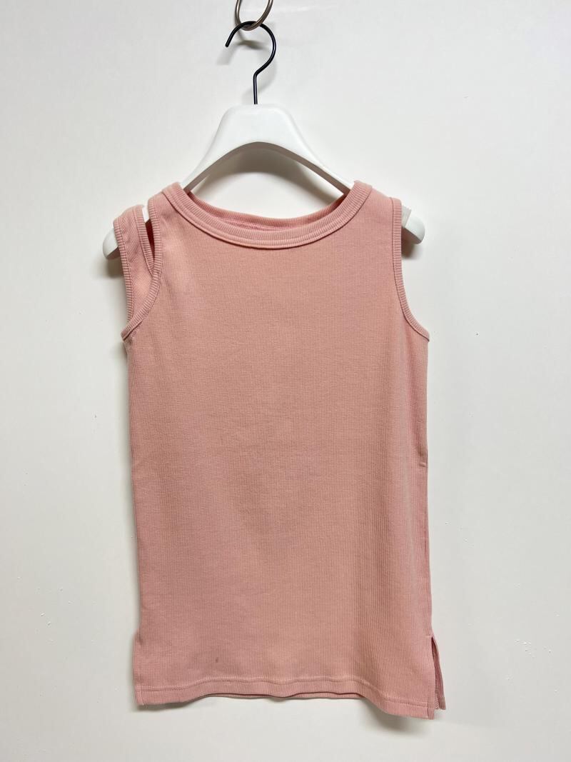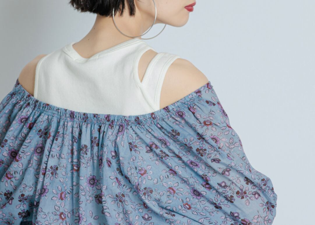肩に入れたスリットで、程よく抜け感を出しています。はおりのインナーとしてちらりと見せるのがおすすめです。アームホールも下着の見えないサイズ感にしています。