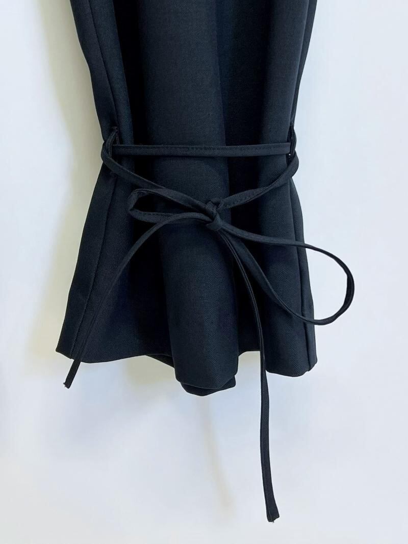 裾の共ヒモのアレンジで裾しぼりのパンツディテールにもなり、デザイン変化が楽しめます。