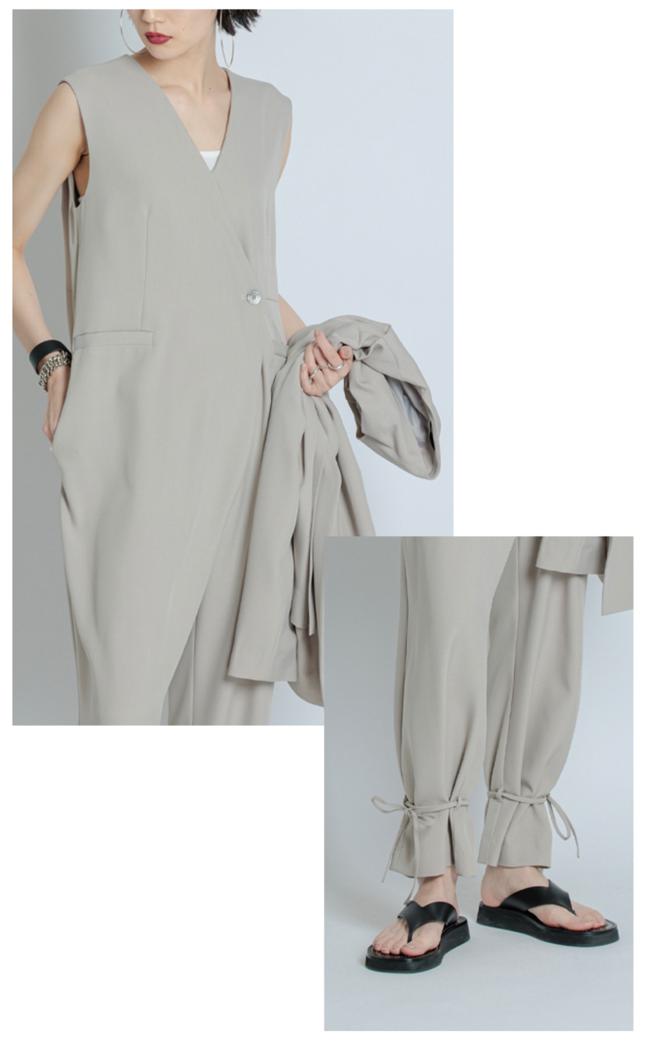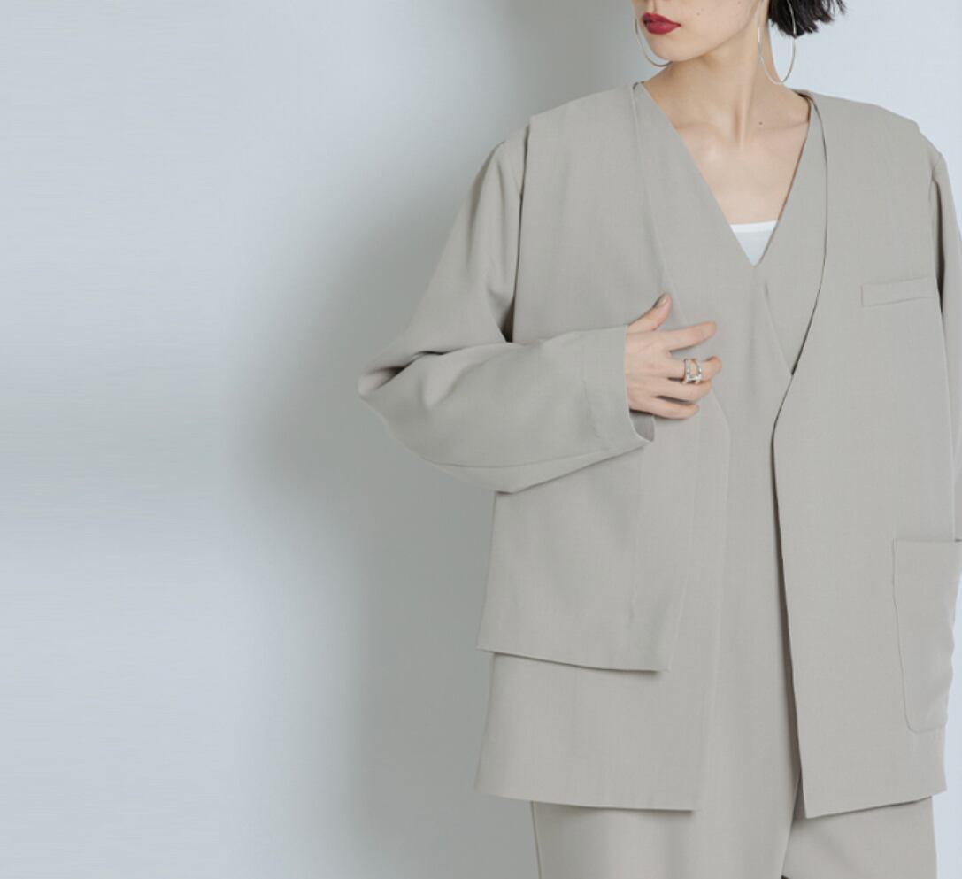 大き目のルーズなサイズ感や、肩にタックを入れフォルムが出るようなデザインで、1枚でもポイントになるようなアイテムになるよう仕上げています。