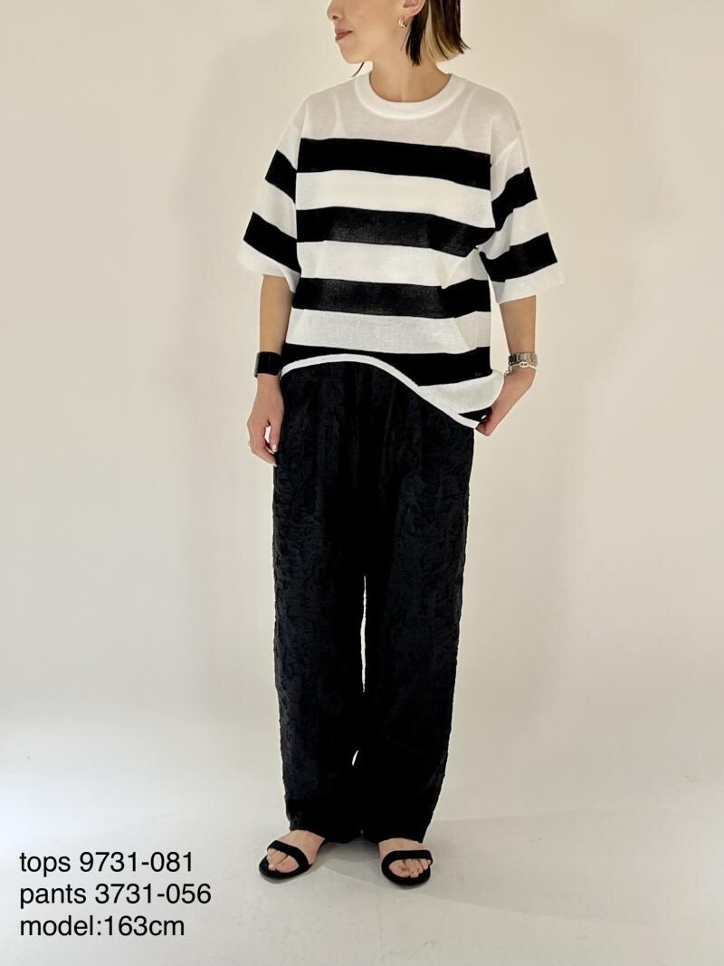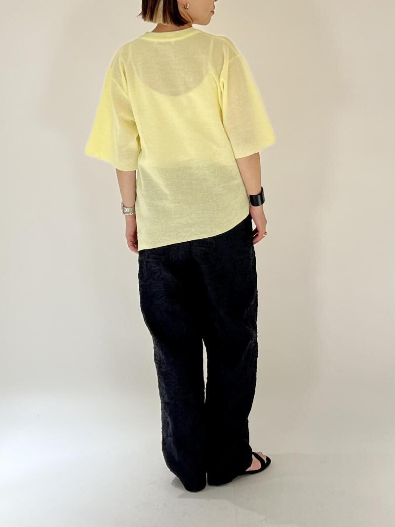 リネン混の素材を使用し、総針編にすることで、ドライな肌触りのニットに仕上げています。