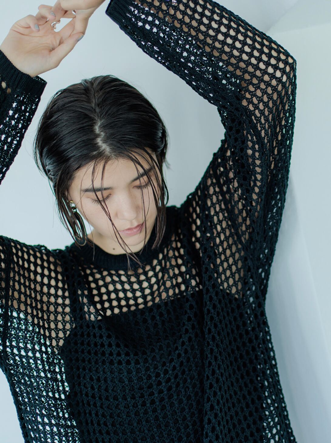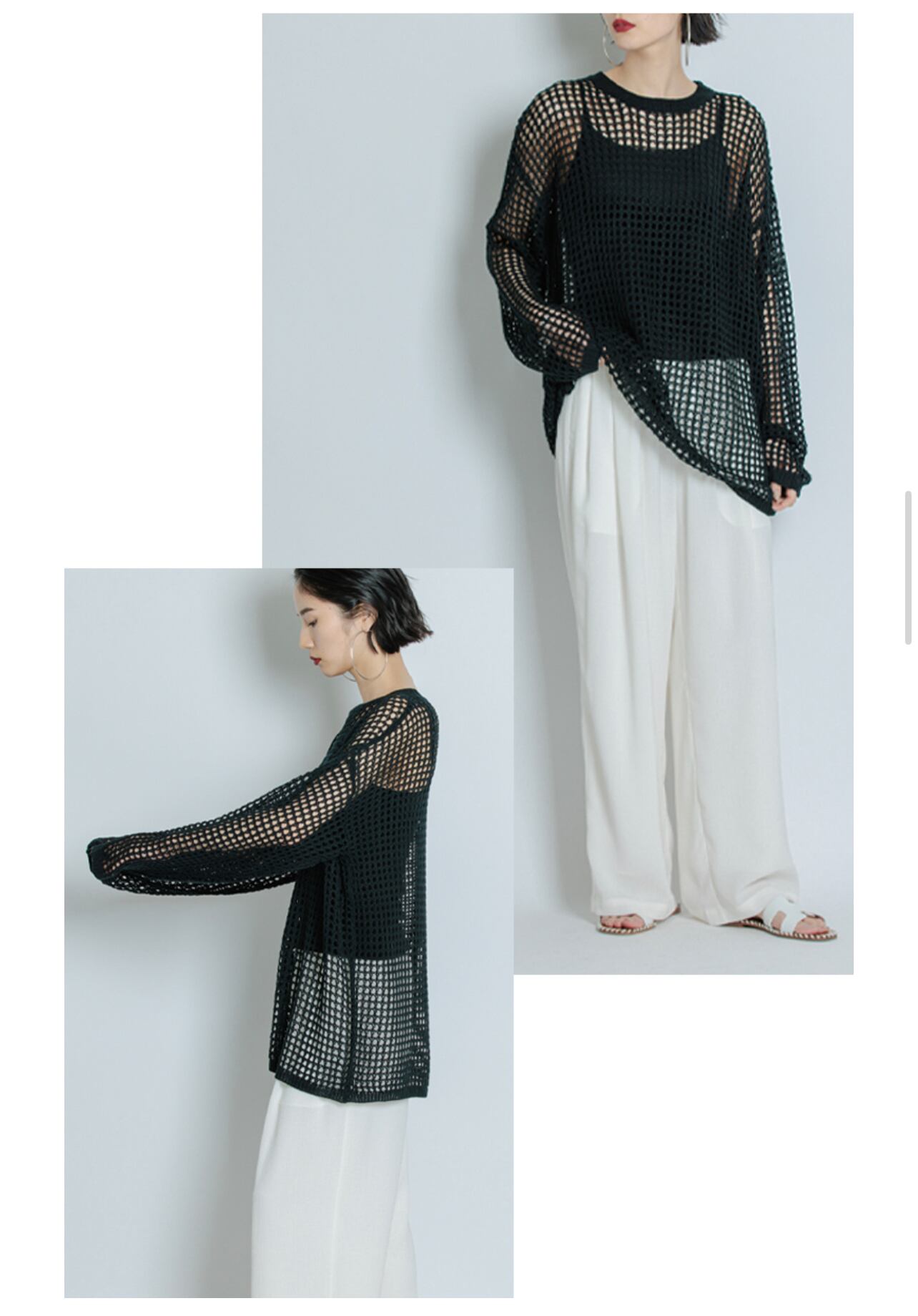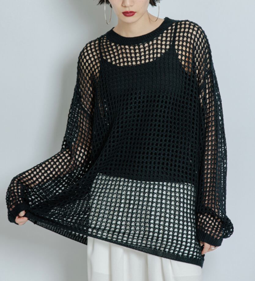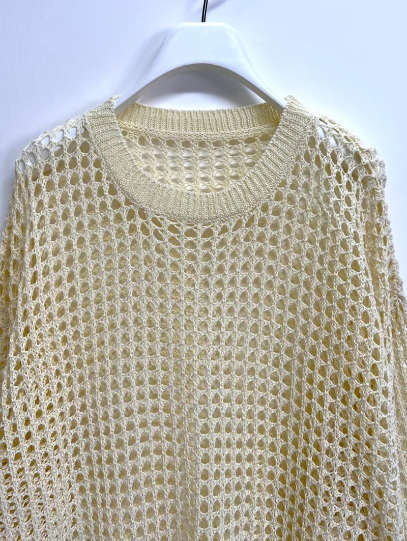 ドライタッチの糸で編んだメッシュ編みが特徴のシアーニットPOです。