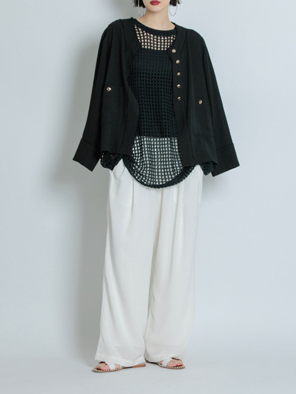 女性らしいニットでありながら、シンプルなデザインでモードな印象に仕上げました。