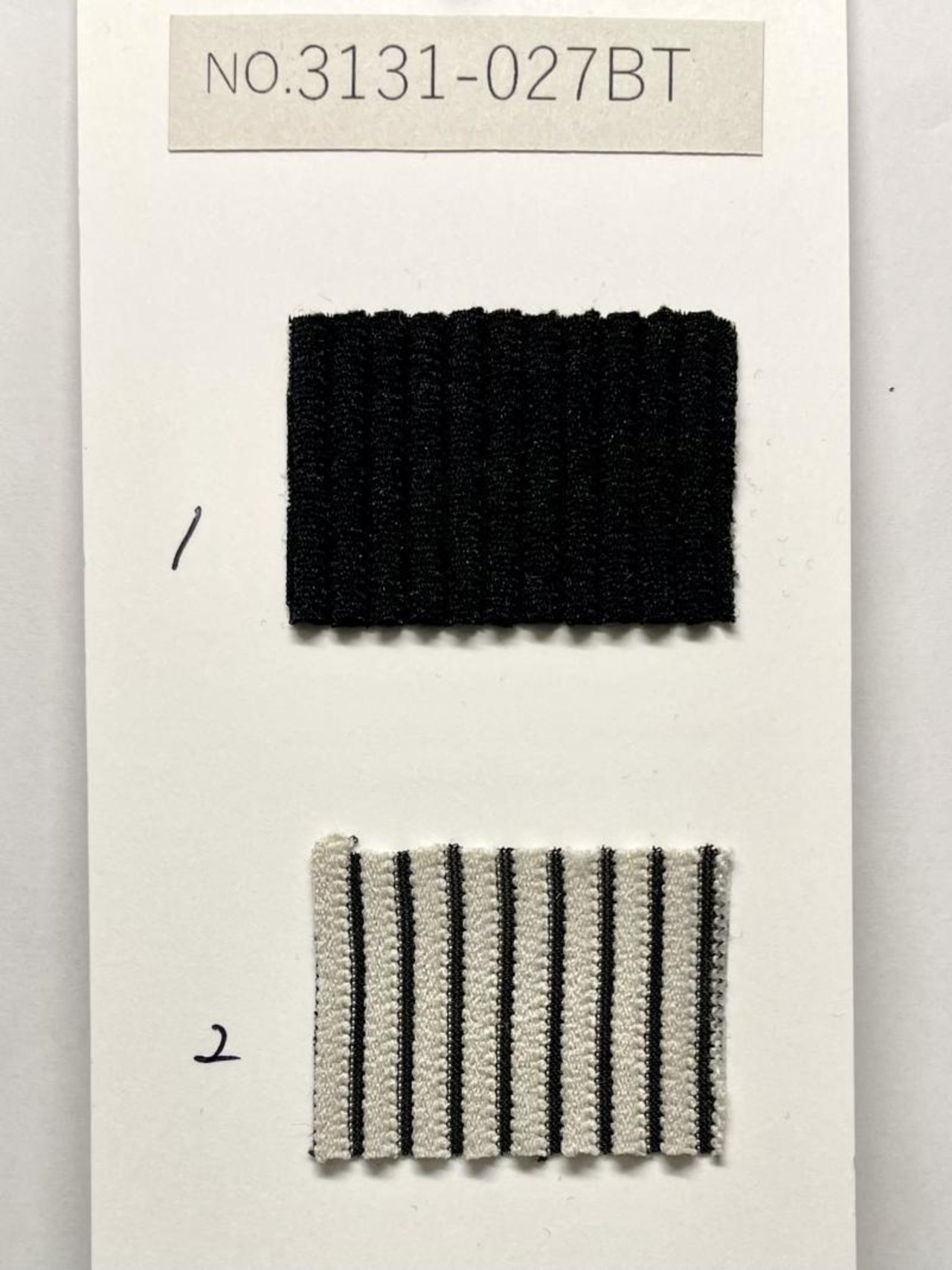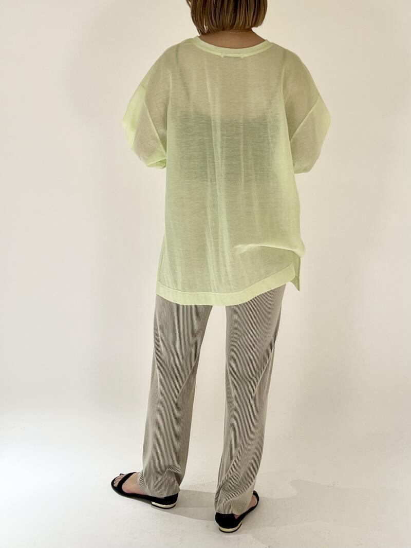 凹凸のあるプリーツのように見える編みのカットソー素材を使用したパンツです。