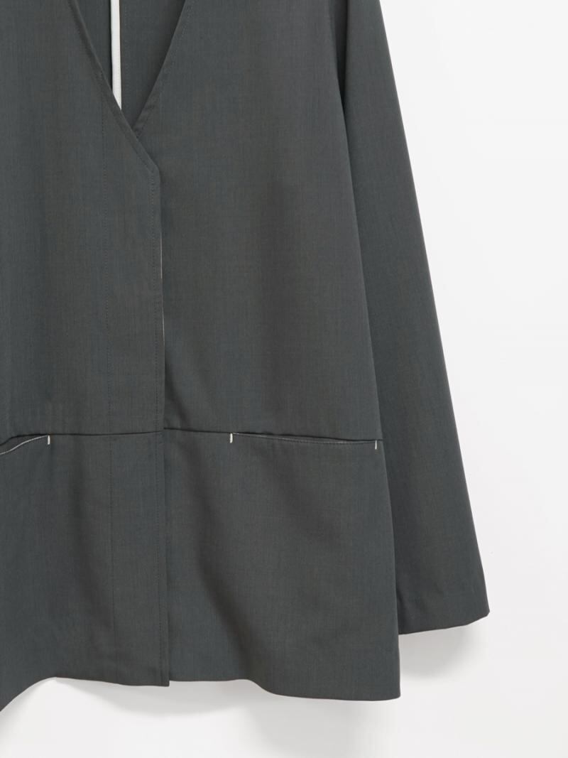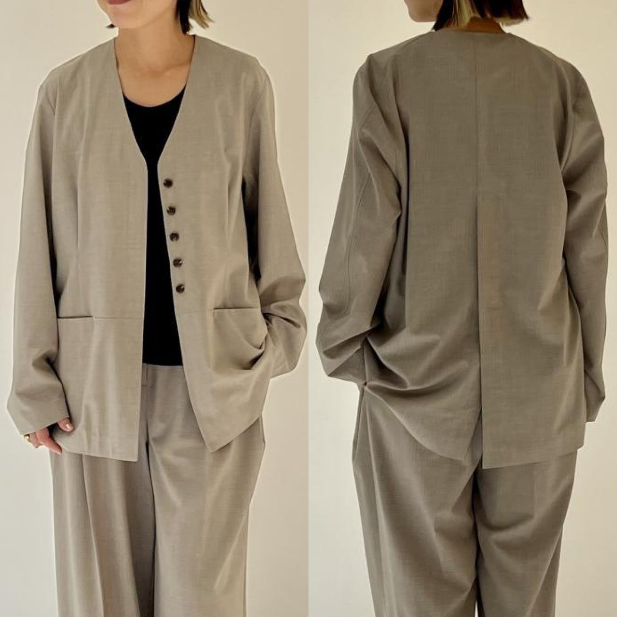 Vネックのカーディガンのように仕立てたライトジャケットです。