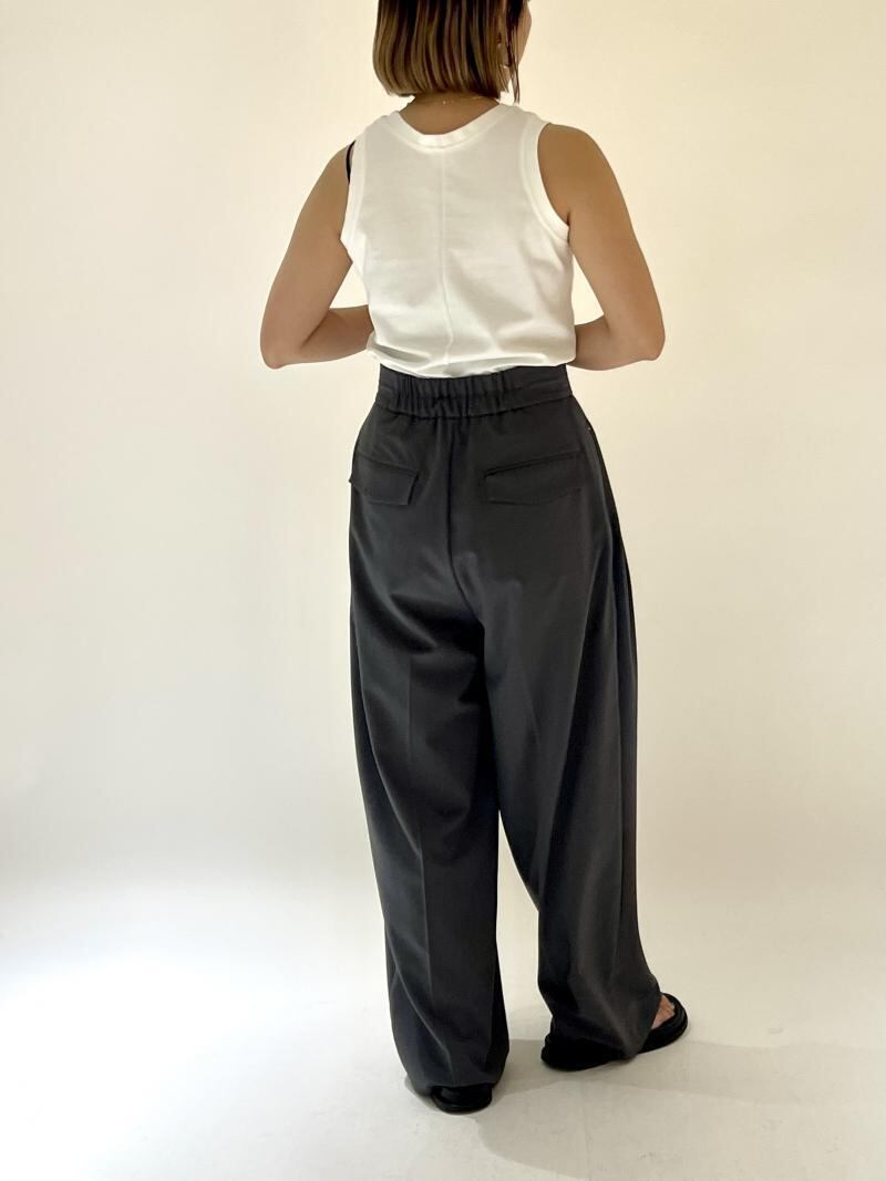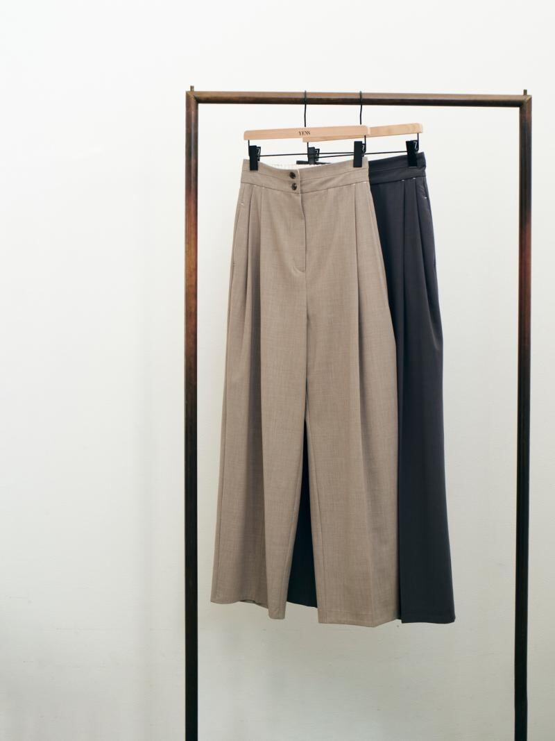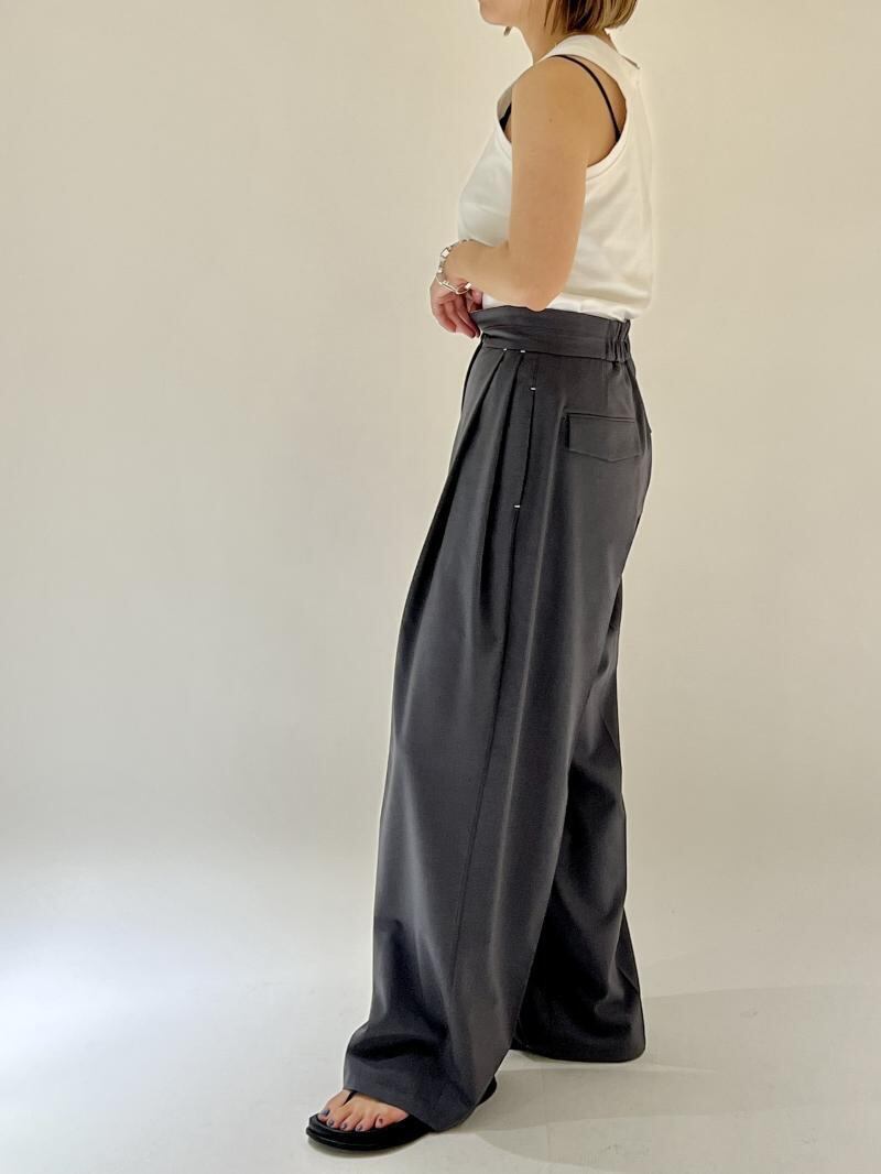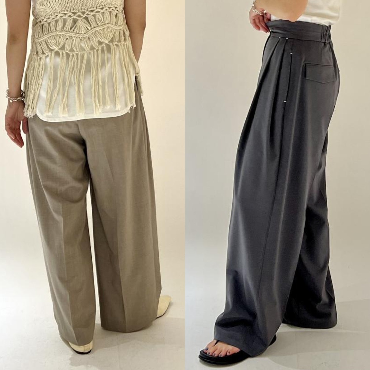2本のタックで作るボリュームを生かしたワイドシルエットのパンツです。