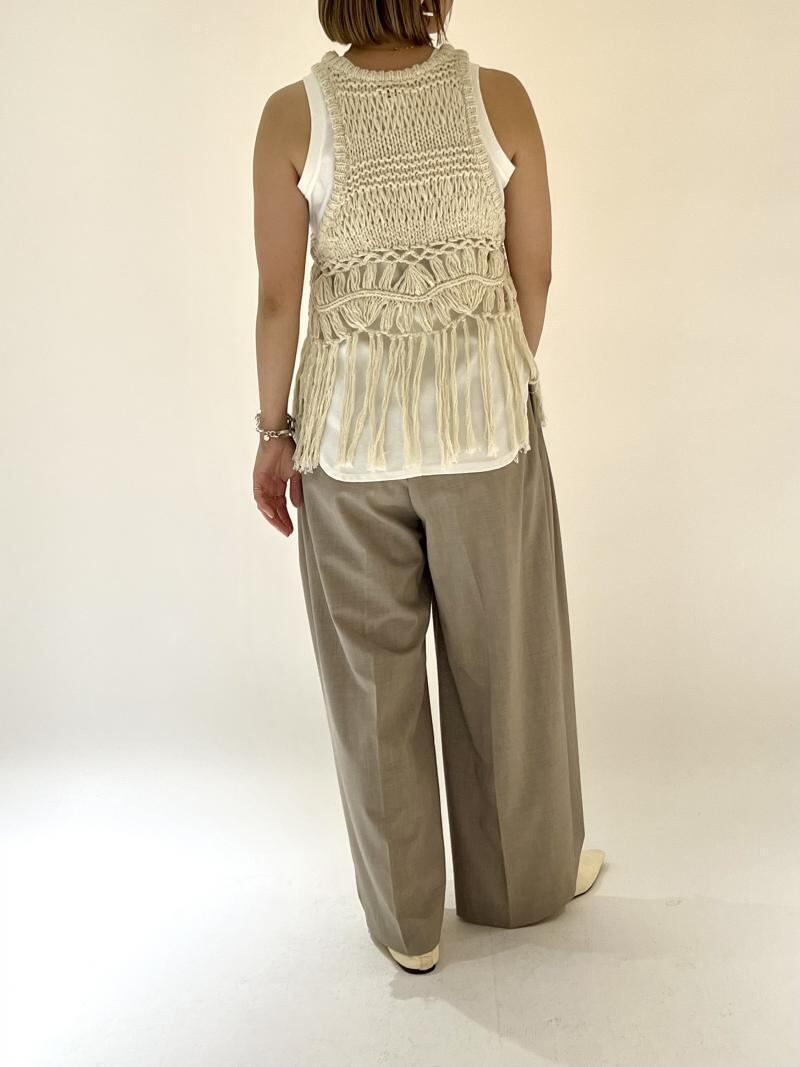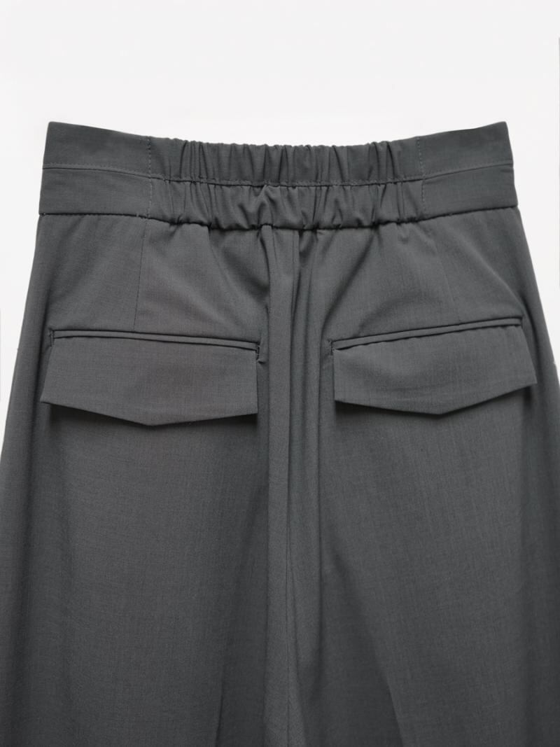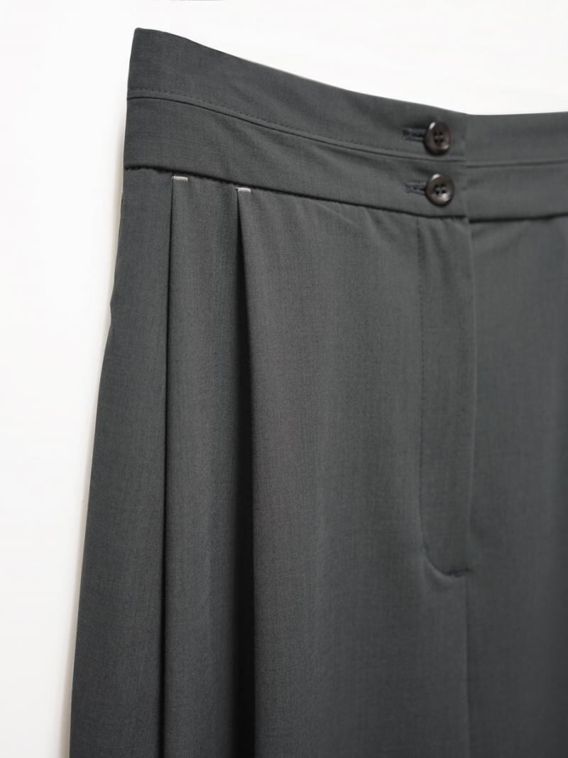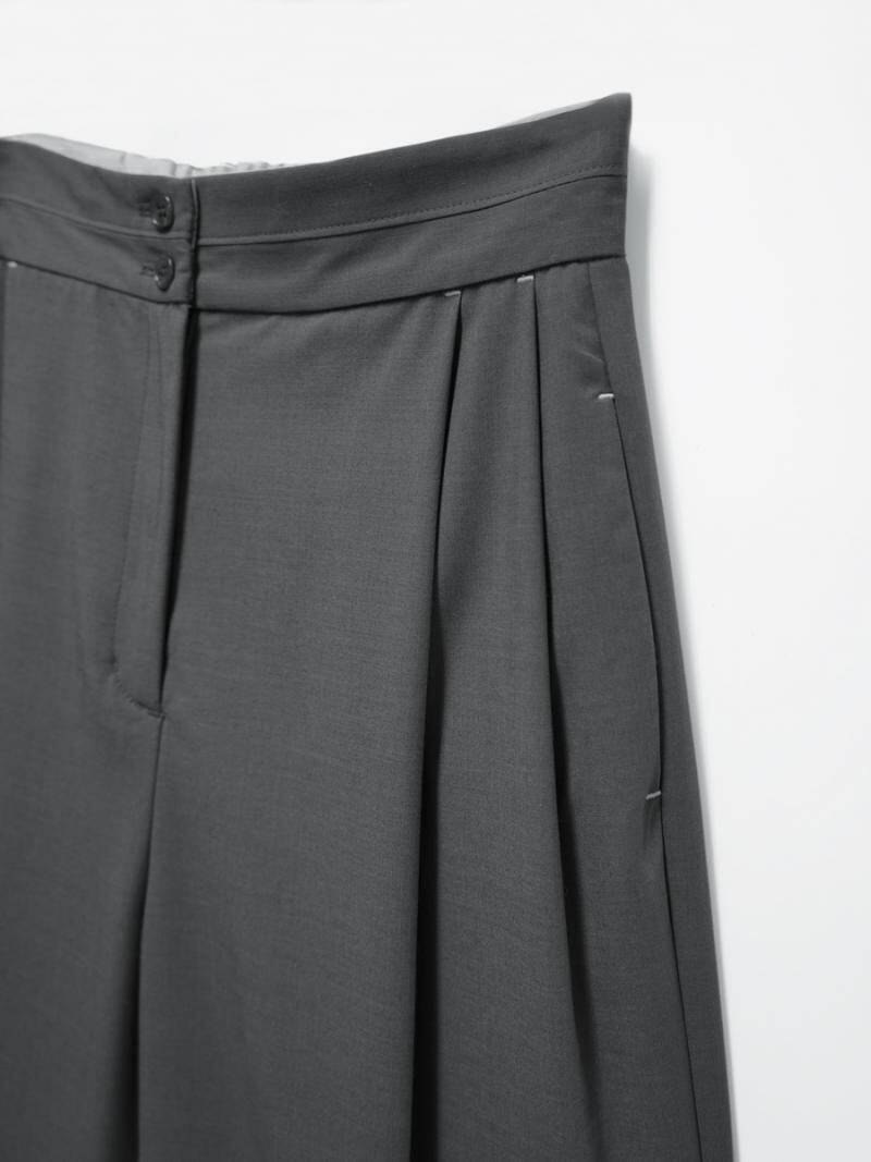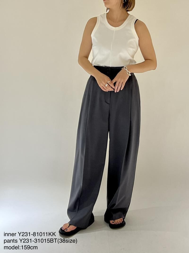 2本のタックで作るボリュームを生かしたワイドシルエットのパンツです。