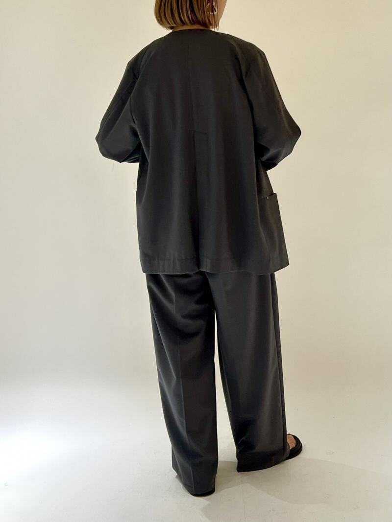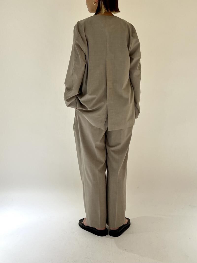薄手で絶妙なハリ感のあるTR素材を使用しています。柔らかく軽やかなタッチとメンズライクな印象がおすすめの素材です。