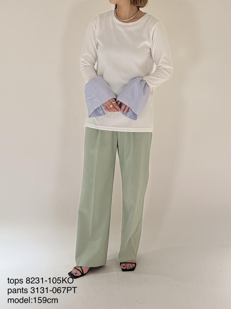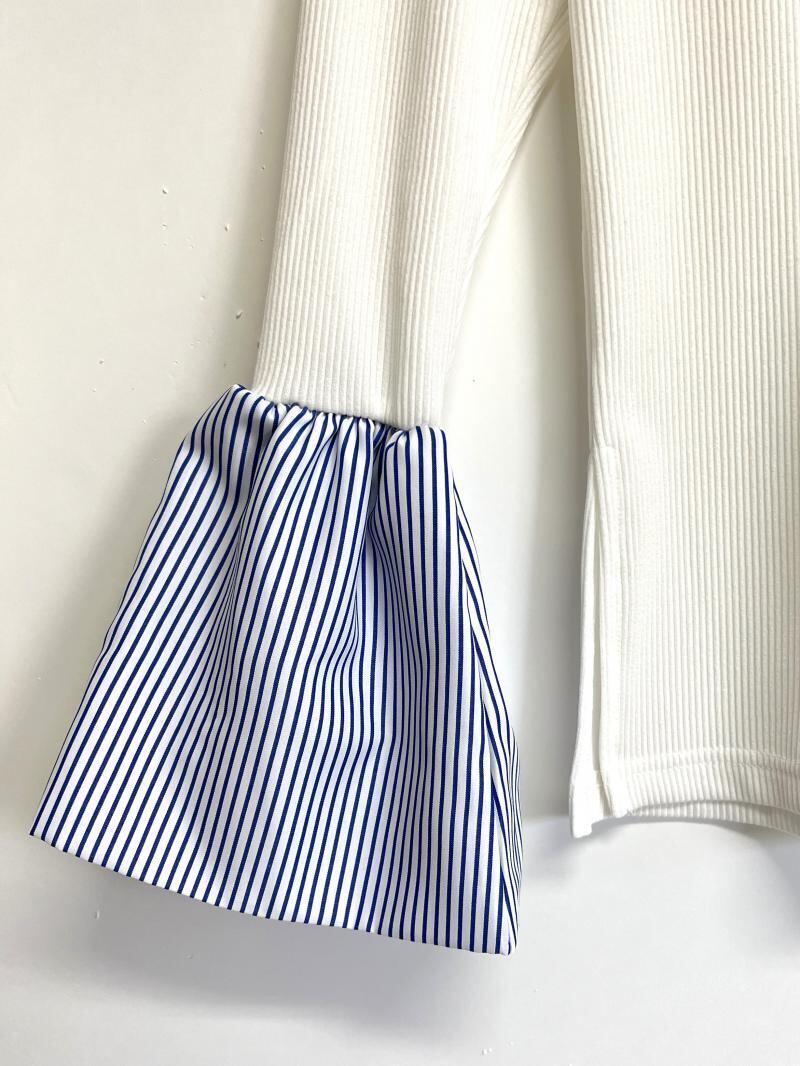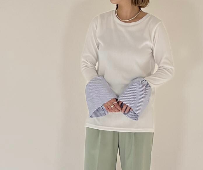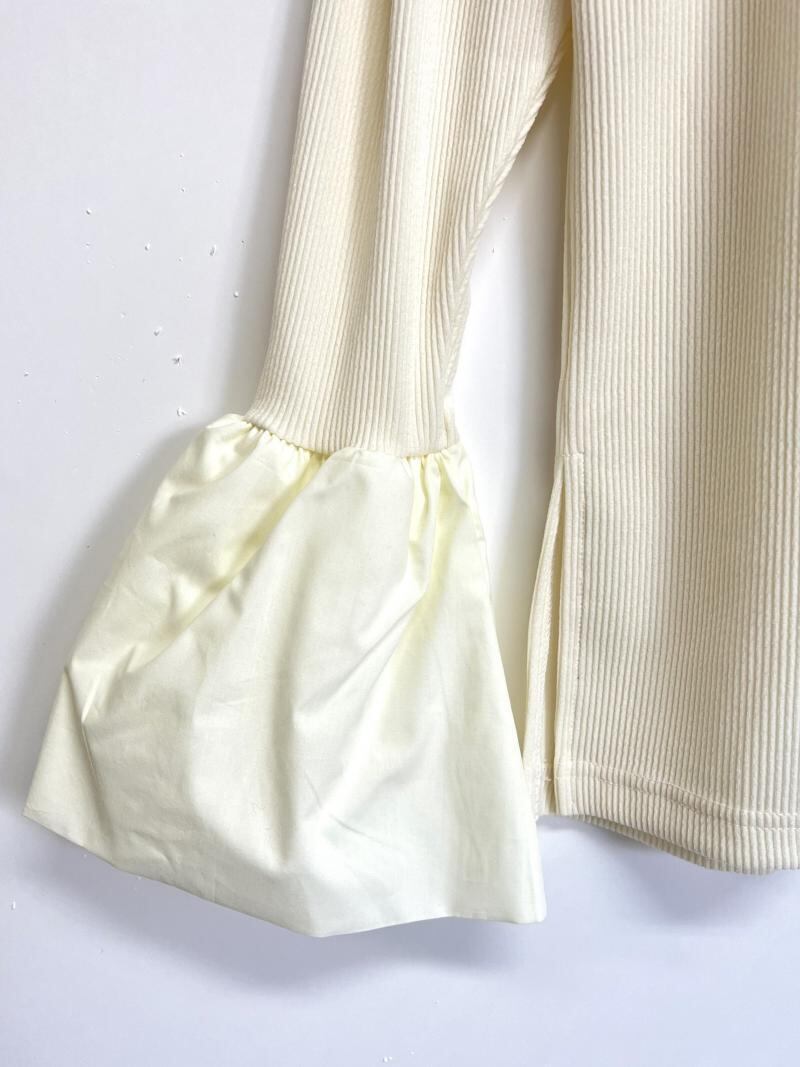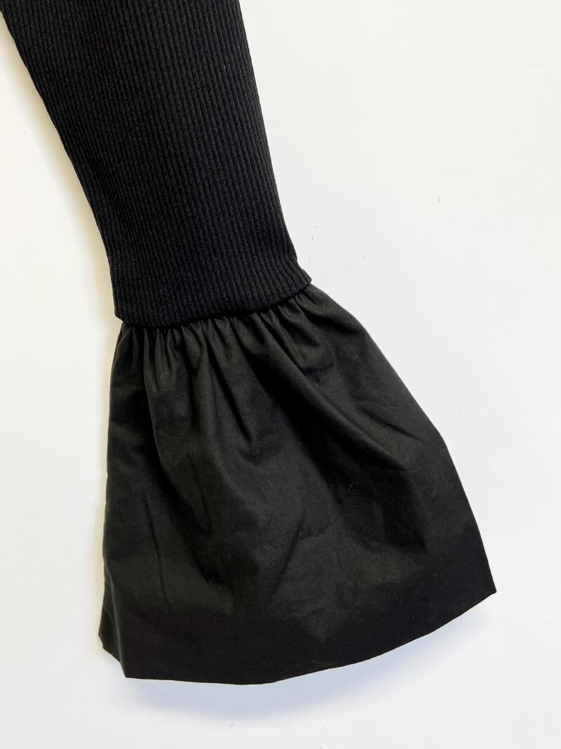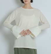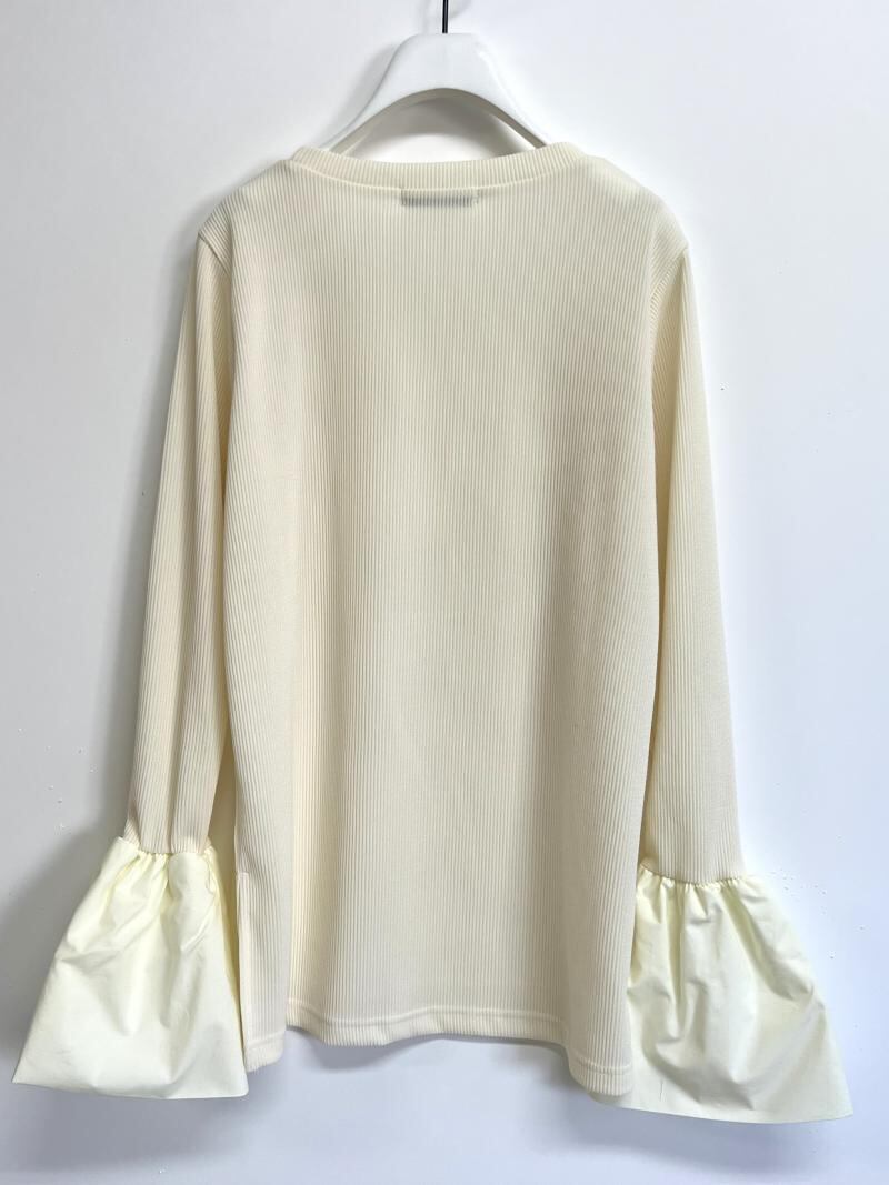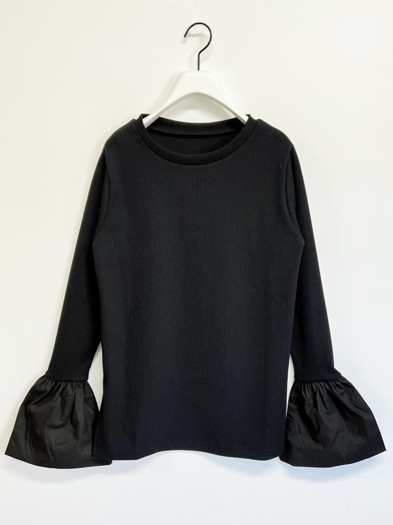 袖口に布帛のフリルをドッキングしたリブカットソーです。