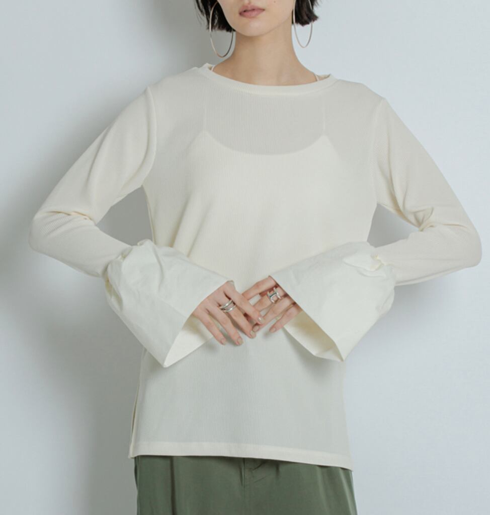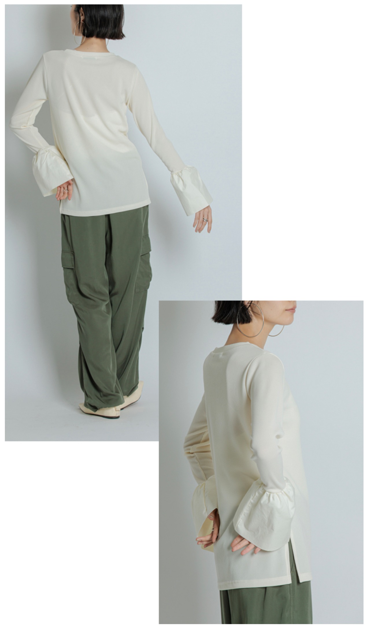 1枚ではもちろん、ジャケットやカーディガンなどを羽織ったときに袖がポイントにもなります。