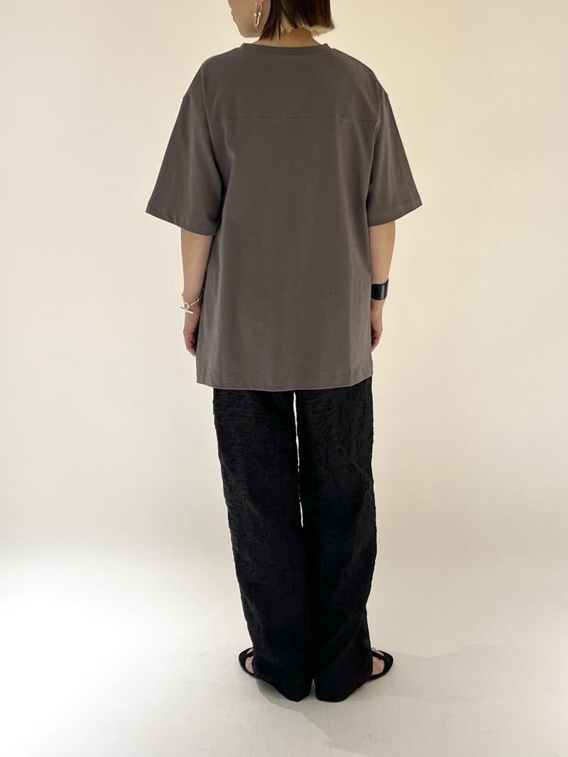 程よくゆとりのあるサイズ感の5分袖Teeで、合わせやすいベーシック形なので、着回しできる1枚です。