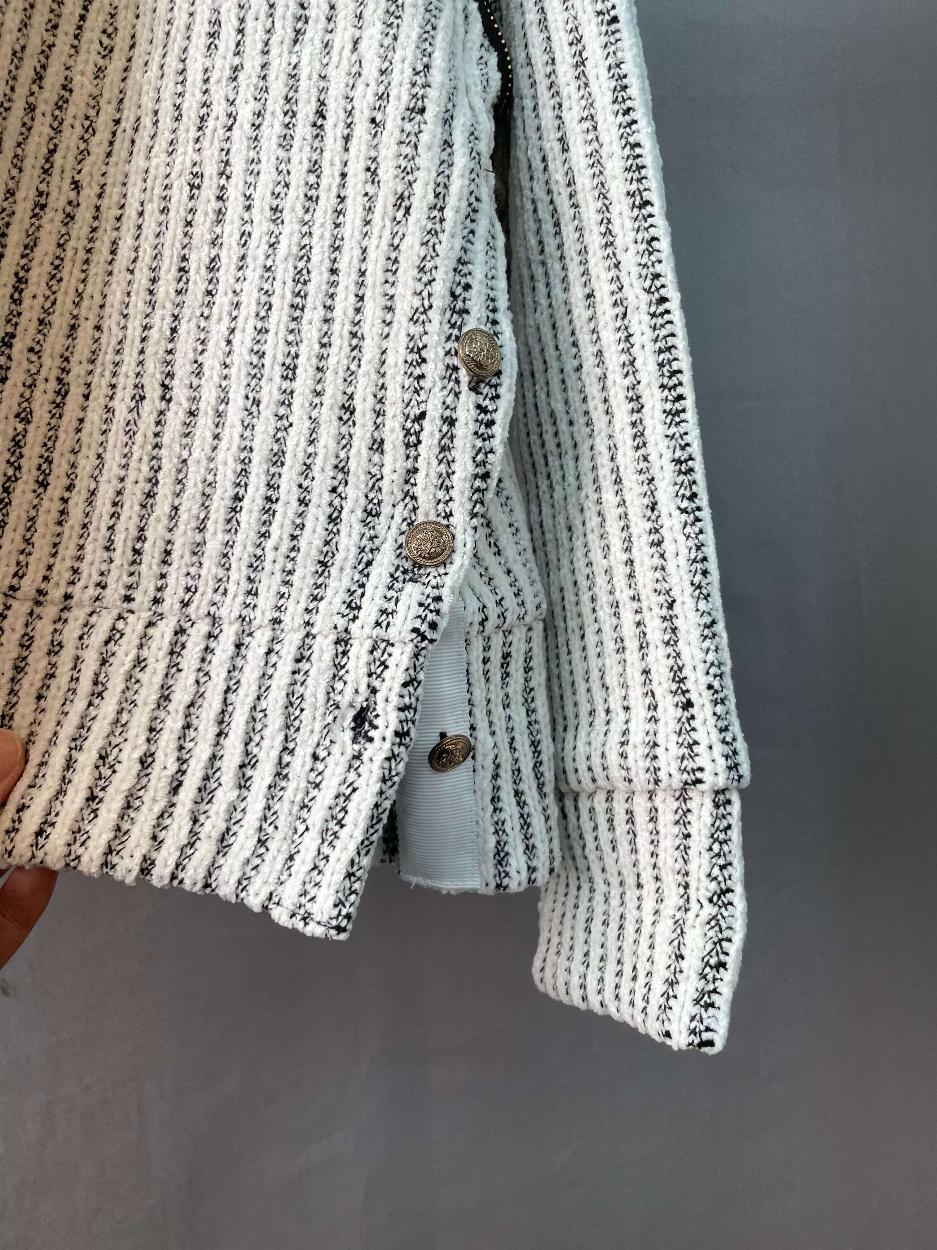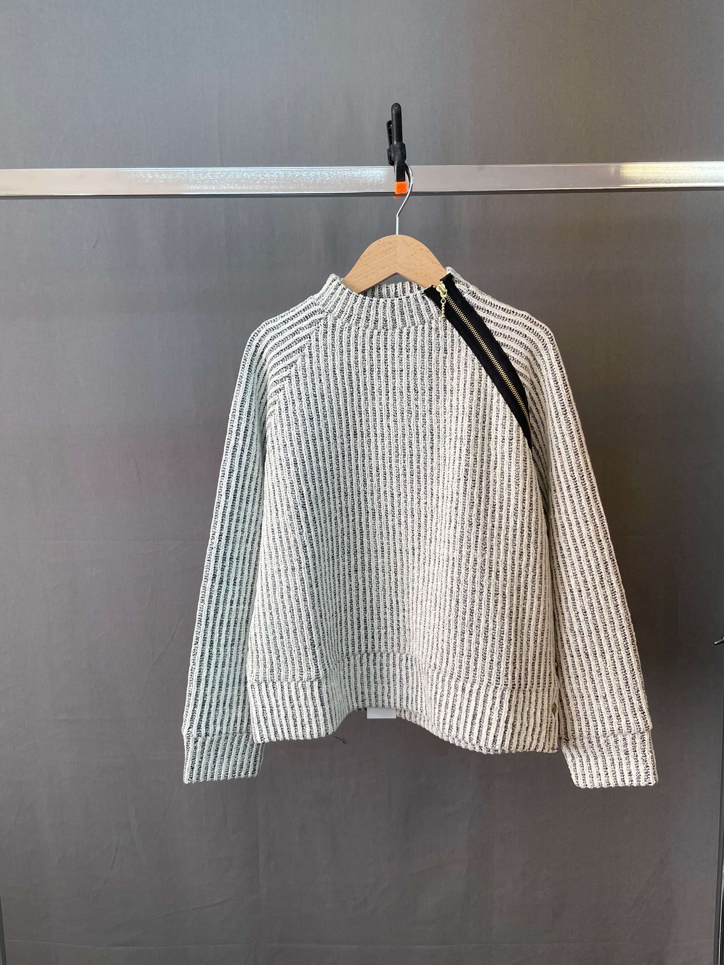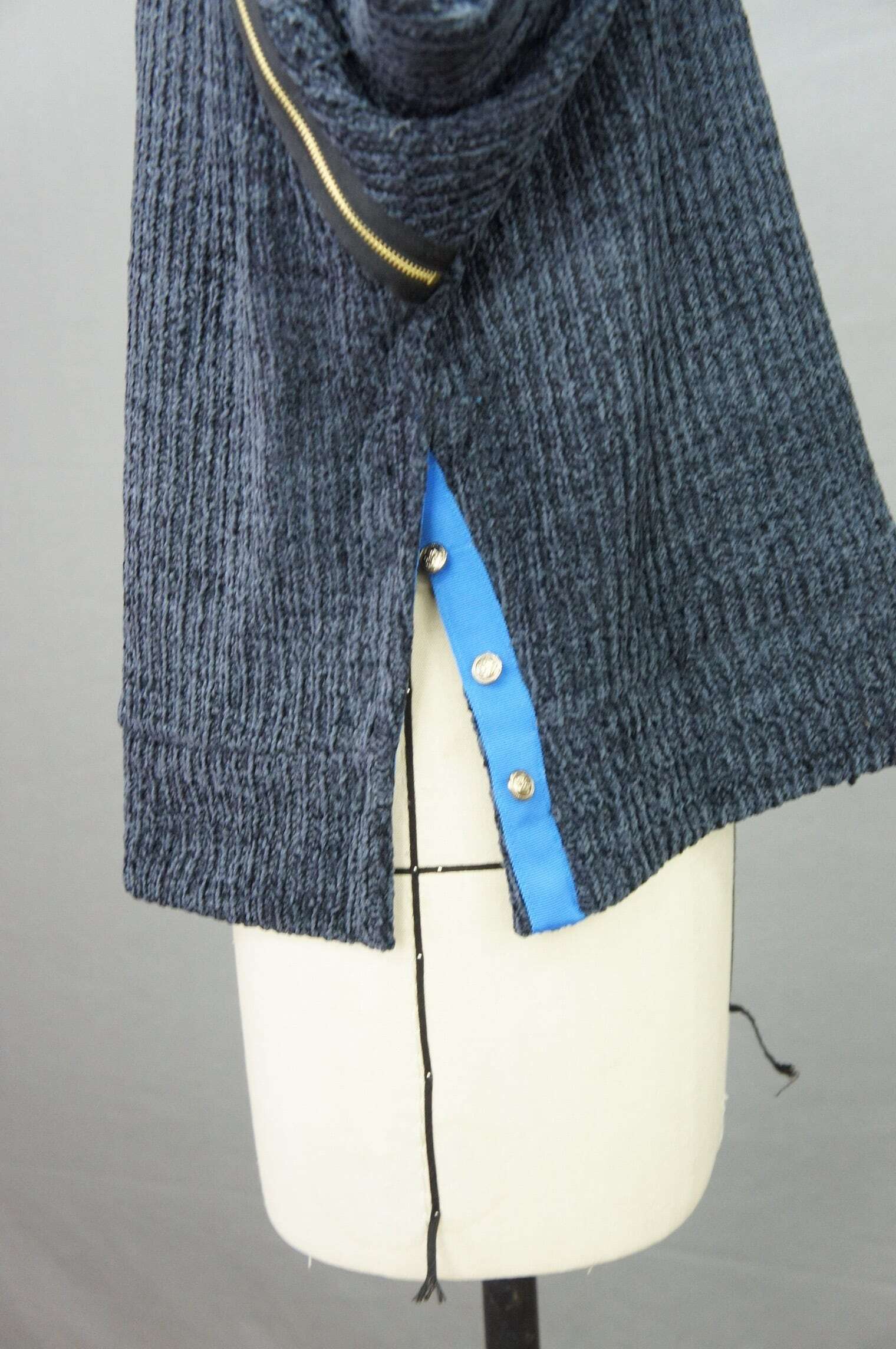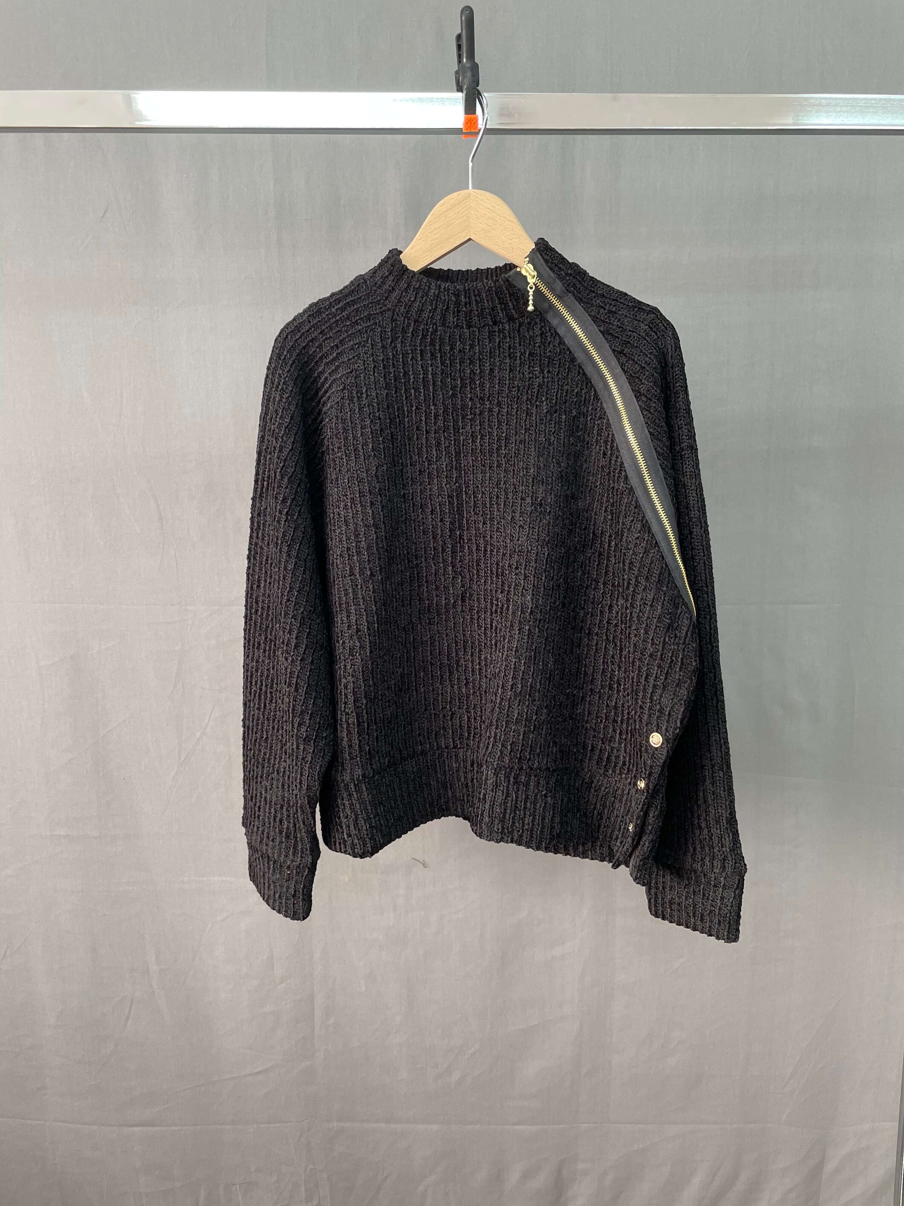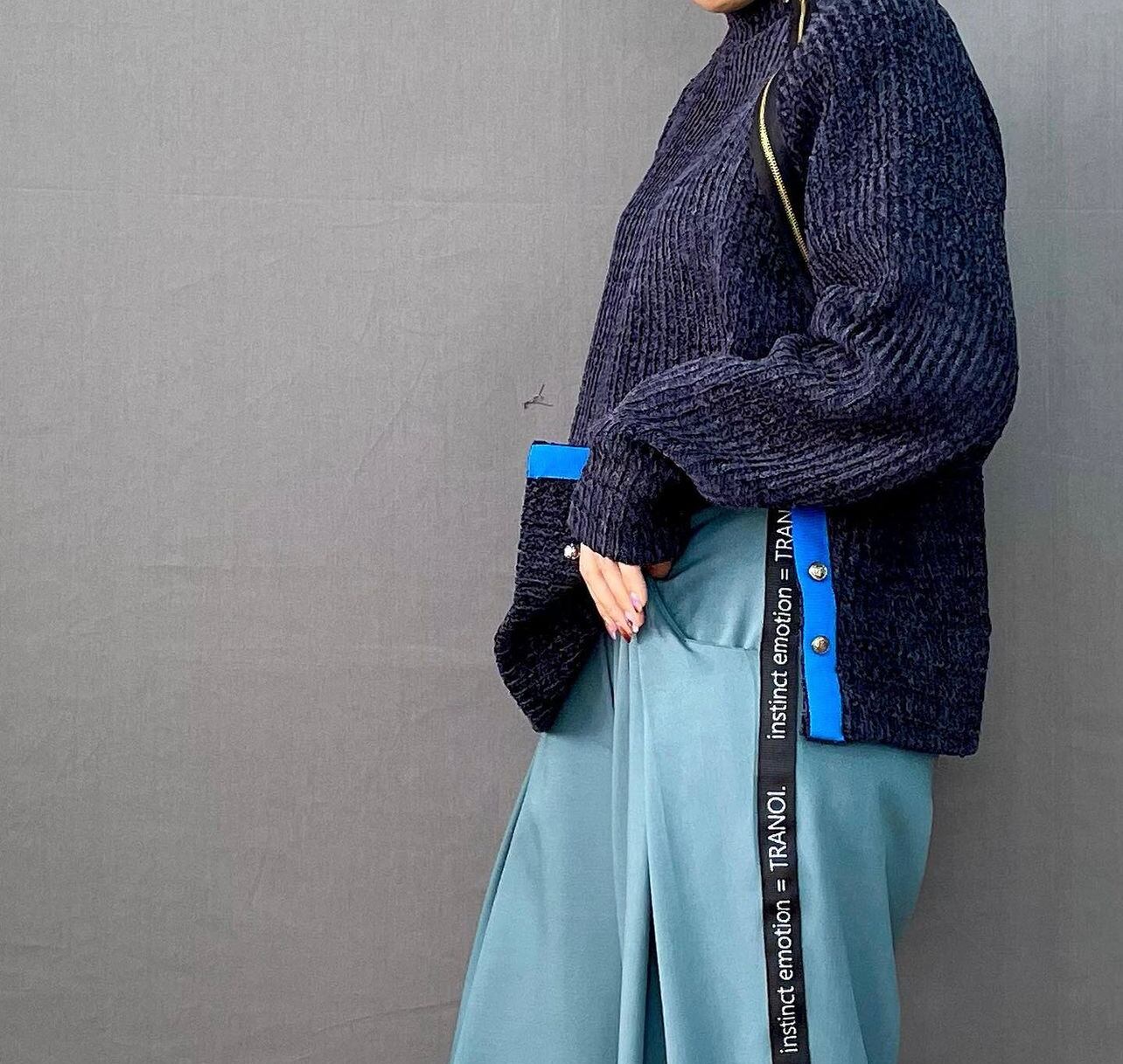 左裾のボタンデザインと大胆なジップのデザインがポイントです。