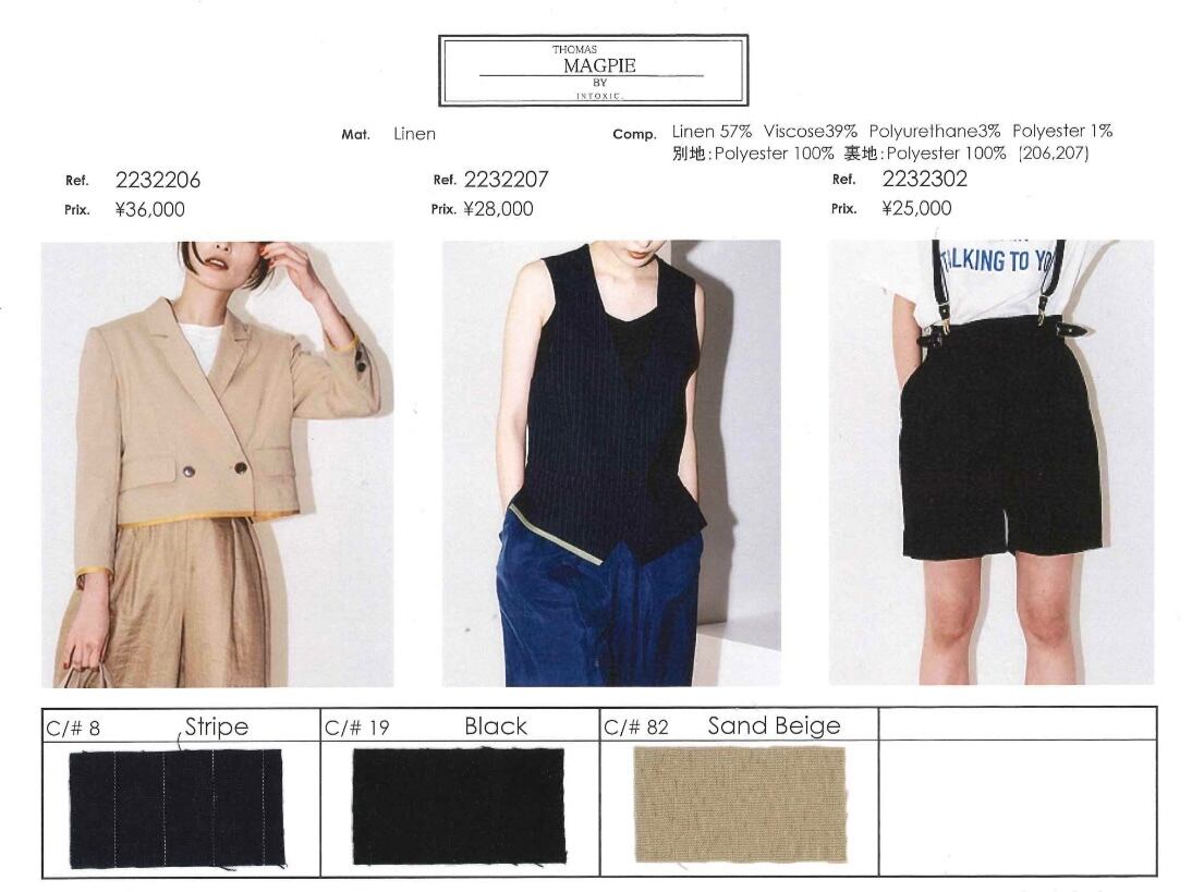 素材 :リネン57% ヴィスコース39% ポリウレタン3% ポリエステル1%