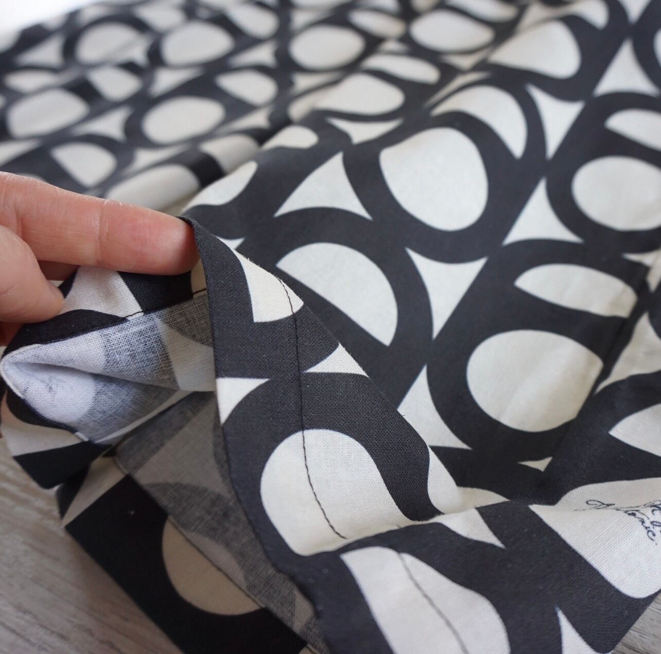 麻素材でややザラつきがあります。当然ネップが見られ、プリントが載っていない部分がありますが、そこは不良とはしていません。(麻素材に見られる特徴ですのでご理解ください。)