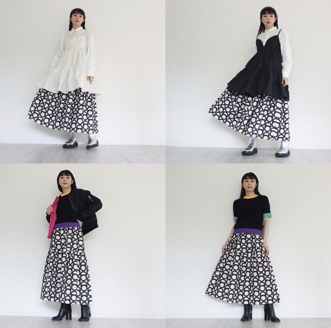 お勧めはアイボリー(ブラック)です。イエローは今回の基調色で、イエローのアイテムを多く作っています。レモン(イエロー)はこの春夏にぜひ着たいカラーで作りたかった色味です。黄色があまりお好きでなかった方にもチャレンジして欲しい色。アイボリーは生成りがかったモノトーンで何にでもとにかく合わせやすく便利です。ストローハットと合わせてナチュラルなスタイルもチャレンジできそうです。私はこのスカート、購入を検討中です。