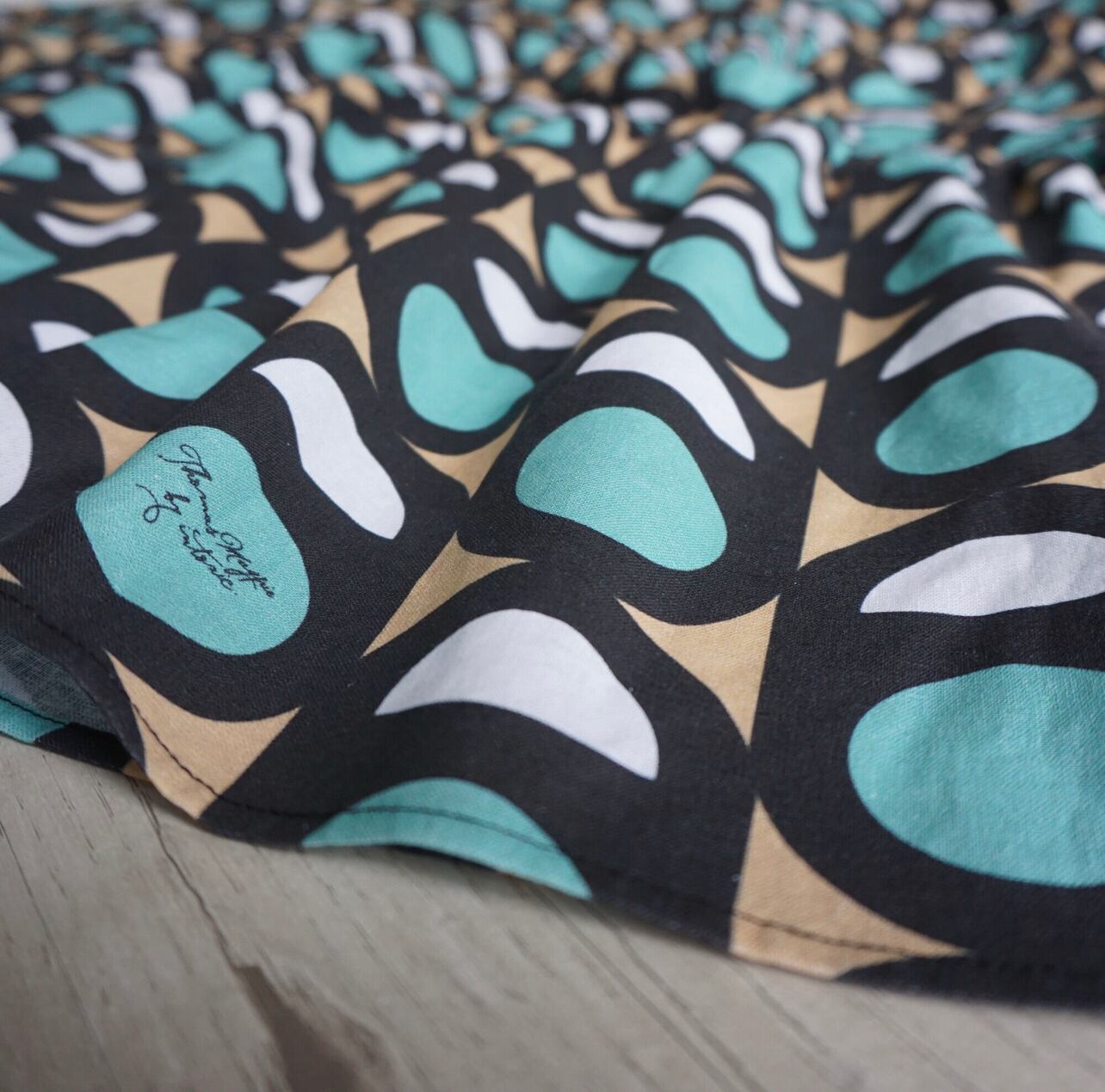 夏の暑い日にも涼しく着ていただけます。また少し厚みがある素材なので、夏に限定せず、上から羽織り、秋や春にも着用しても違和感がありません。かなり使えるドレスではないかなと思います。ペパーミントの色味はベージュ、ホワイト、ブラックを使い、とても綺麗なカラーの組み合わせになりました。私のおすすめカラーはアイボリーです。着やすくて合わせやすい。私は今回、このオリジナルテキスタイルを全アイテム購入したいと思っています。そのくらいよく出来ているのではないかな?と自信作です。
