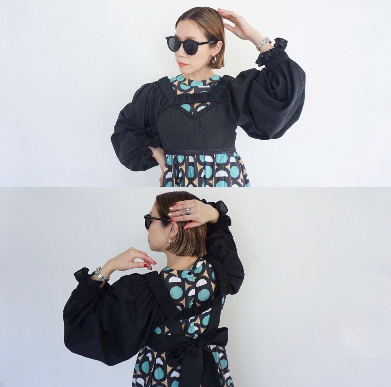 今回のナンバーワンのお勧めアイテムがアタッチドスリーブ。付け袖です。前回はフリルハーネスベスト、以前はハンティングベストなど、いろいろな遊びのあるアイテムを独自のスタイルで提案していますが、今回はちょうど流行している付け袖というアイテムにフォカースしました。付け袖はお洒落でファッション感度の高いアイテムかな?と思っていましたが、ちょうど真夏に日焼け防止アイテムとして提案します。柔らかな肌触り、冷感接触の涼しい日本製の素材で、自然で上品な膨らみのあるパフスリーブ。袖口は柔らかいシャーリングゴムでどこでも留めて調整でいるようにしています。長袖、半袖の長さの調整が可能。接触冷感なので真夏もひんやり、またオールシーズンの重ね着に、今こそ有能なアイテムではないかと思います。流行的なファッションを楽しめる、今の気分にピッタリのアイテムではないかと思います。