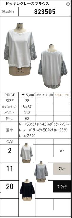 予約販売【 ayane 】ドッキングレースブラウス (823505)4月お届け