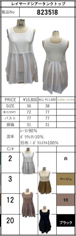 予約販売【 ayane 】 レイヤードシアータンクトップ(823518)4月お届け