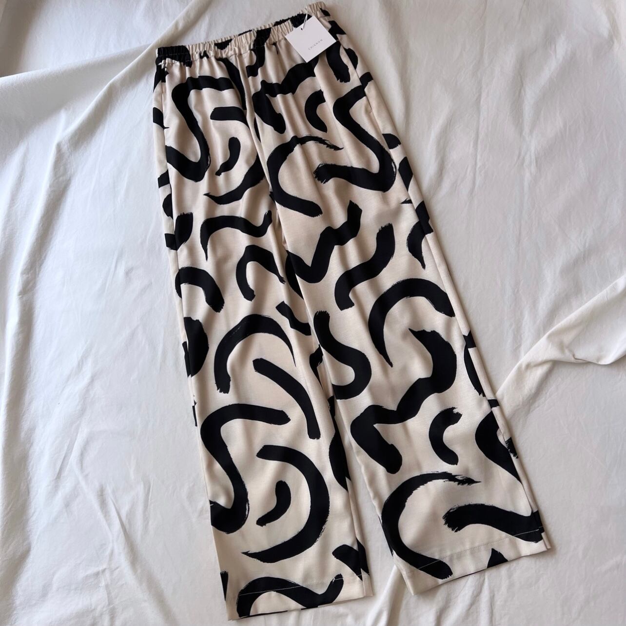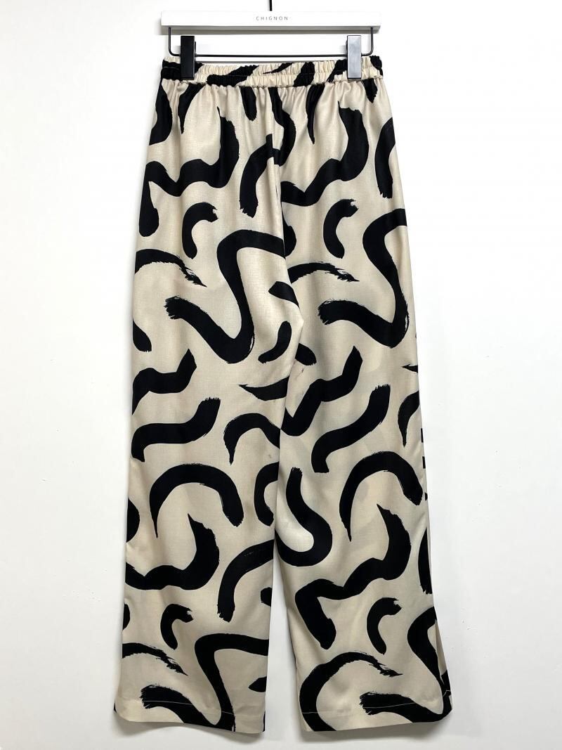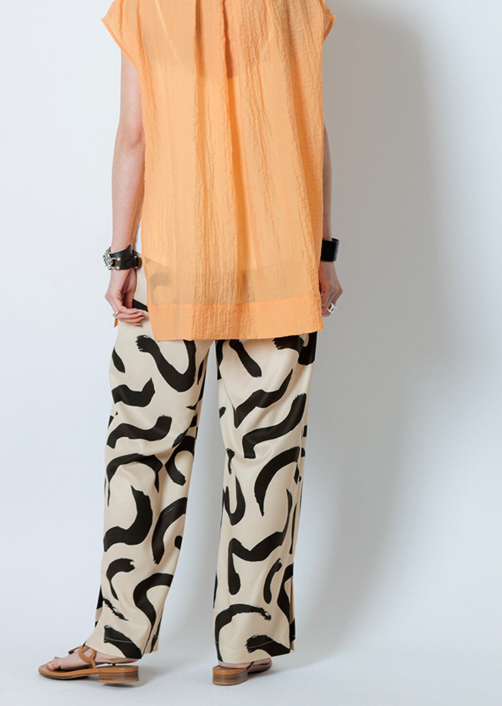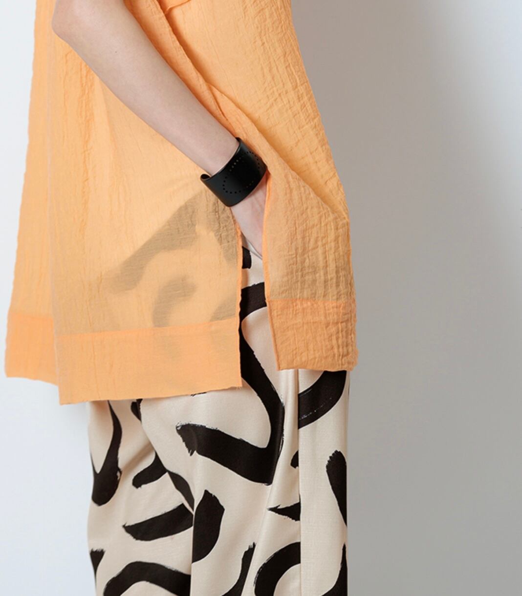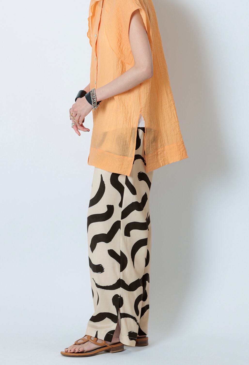 裾サイドのあきで足さばきに動きが出るデザインやウエストゴム仕様でイージーな感覚で着るデザインもポイントになります。