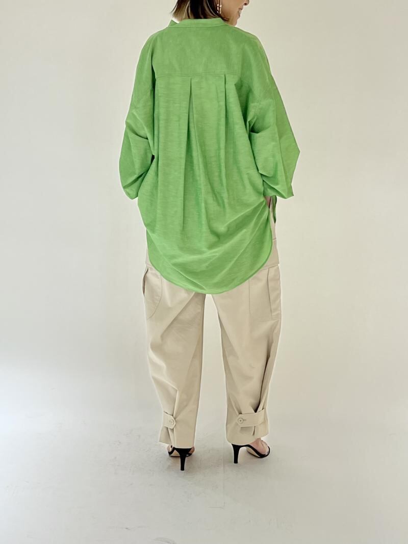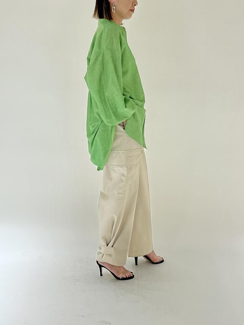 リネン混のナチュラルな素材感にさらに製品洗いをかけてこなれ感のあるタッチ、風合いに仕上げました。