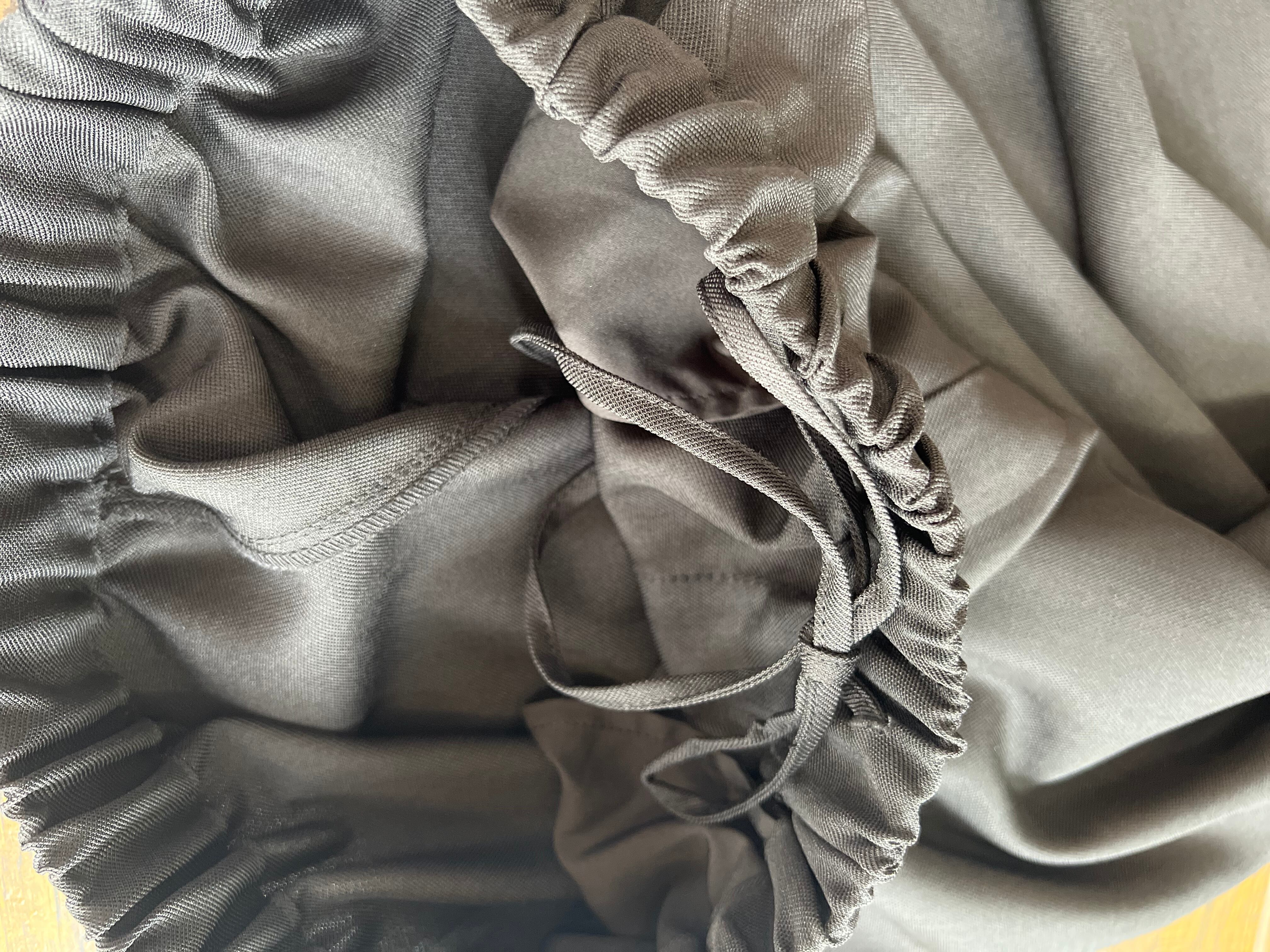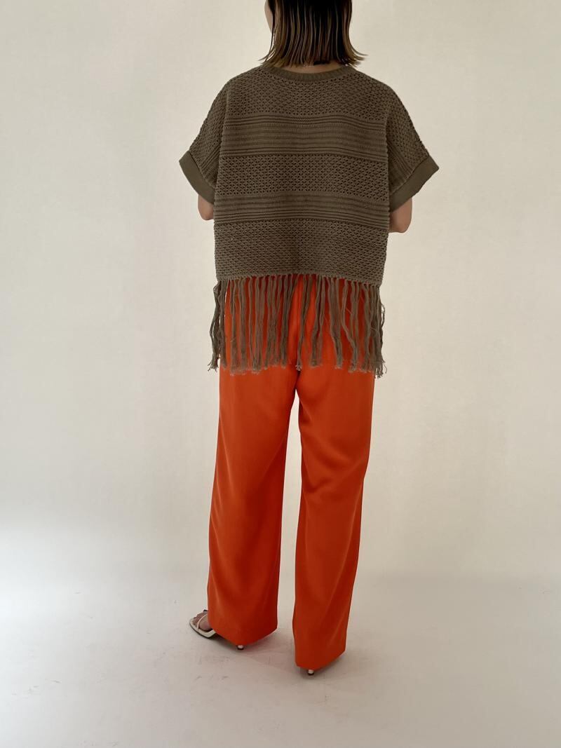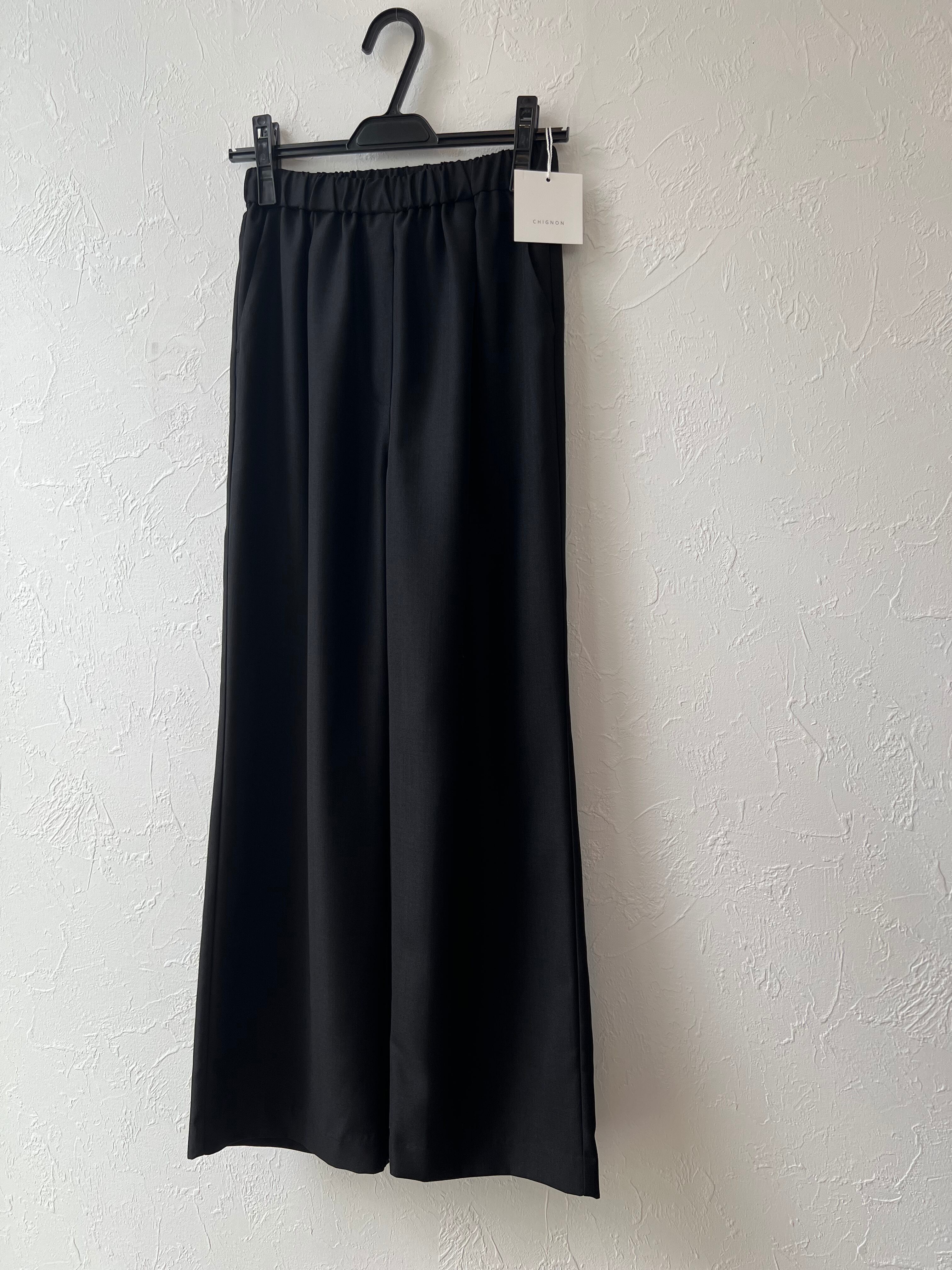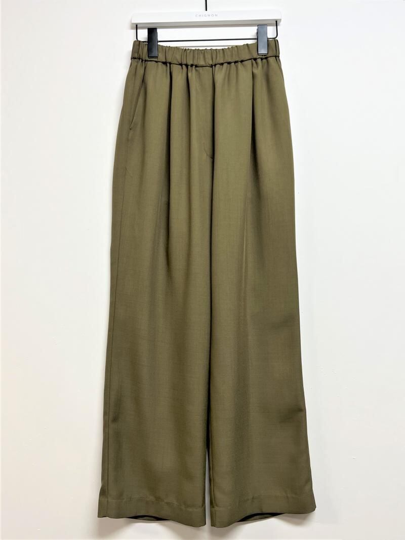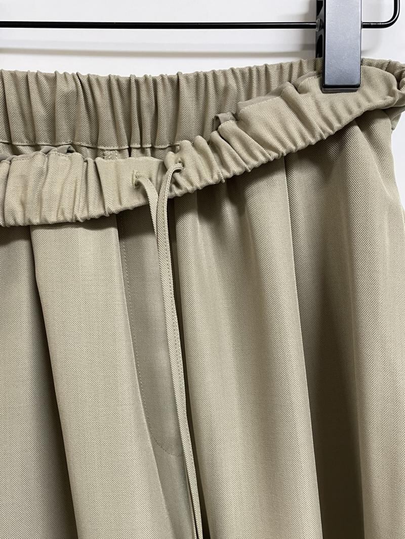 ウエストゴムのディテールでウエスト、腰回りはカバーしつつ、スタイルアップにこだわったヒップ周りのパターンシルエットで万能になる1枚です。