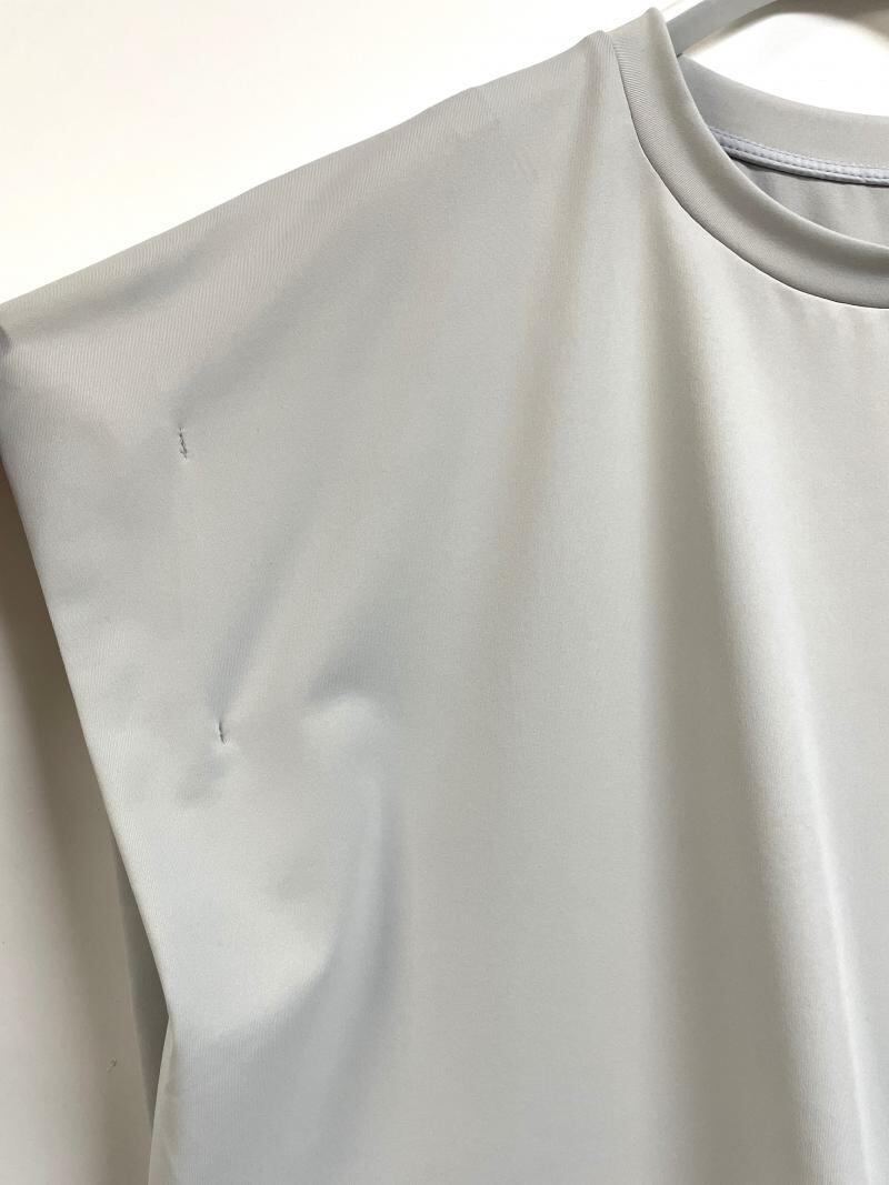 一見シンプルなオーバーサイズのプルオーバーですが、肩で大きく折り込んだタックが