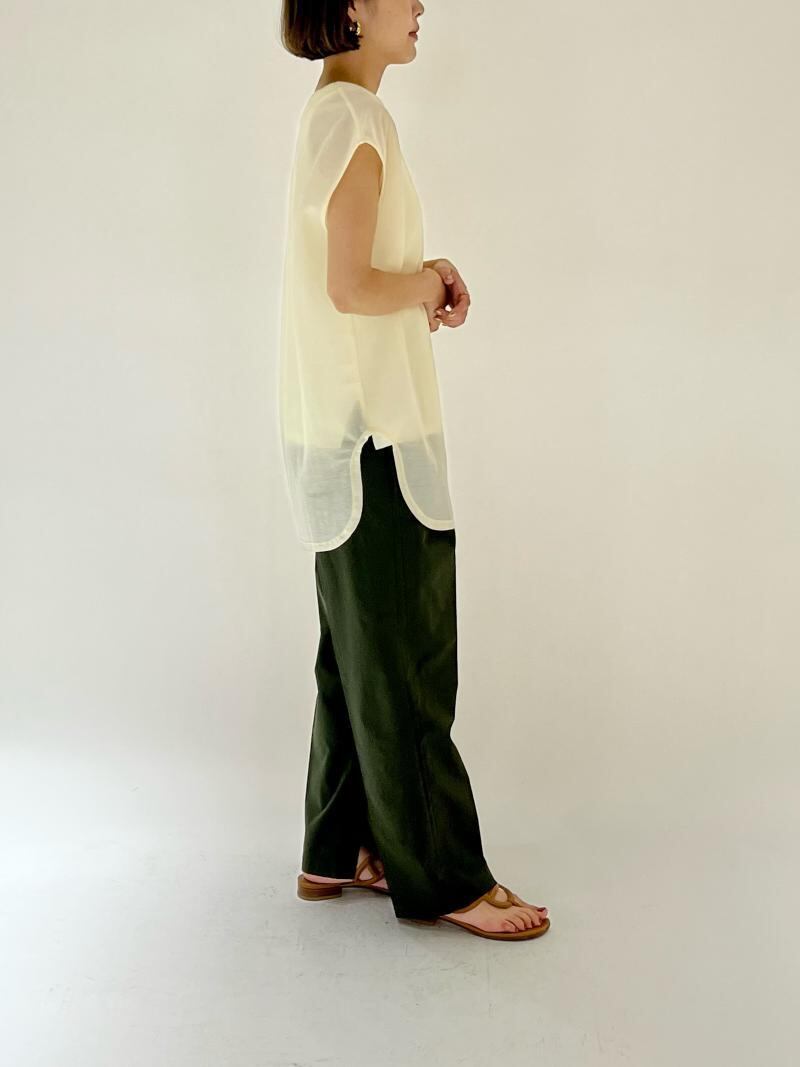 布帛見えのような素材感は着心地もよく、トレンドのシアー感も上品で大人な印象の雰囲気になります。レイヤードを楽しめるように合わせやすいカラーリングもおすすめポイントになります。