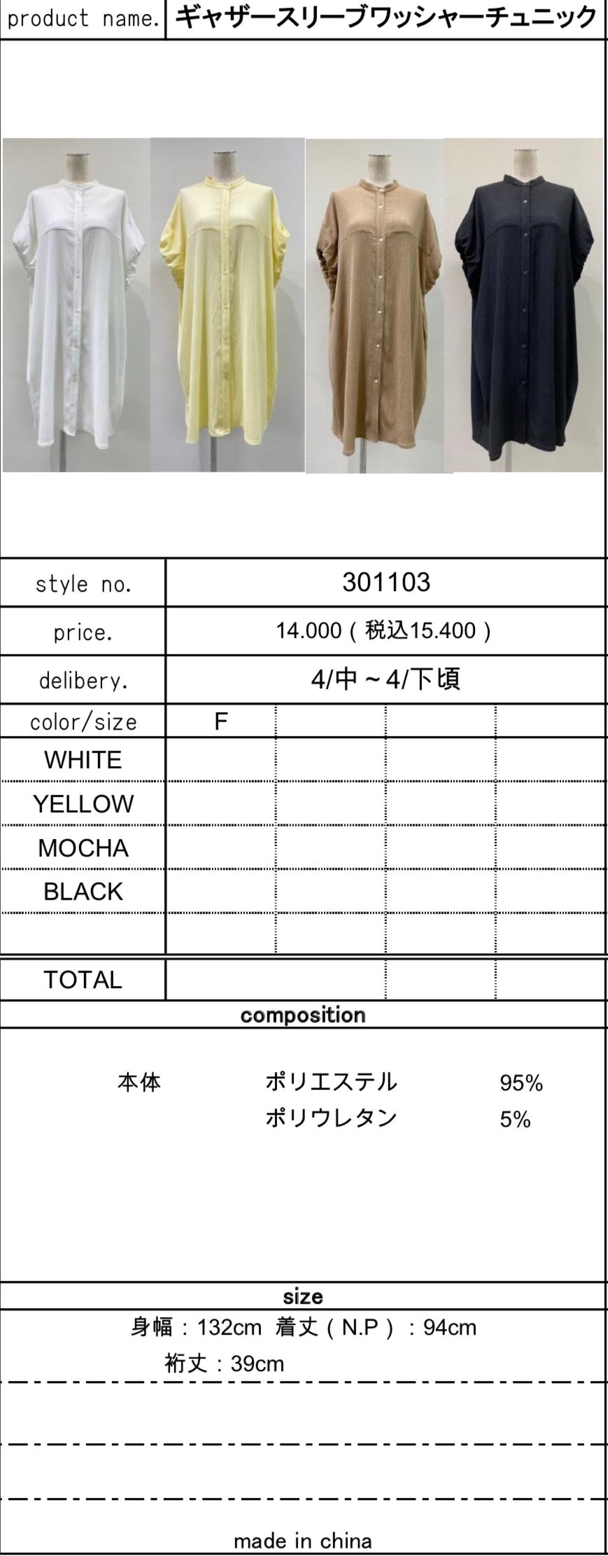 本体 ポリエステル 95% ポリウレタン 5%