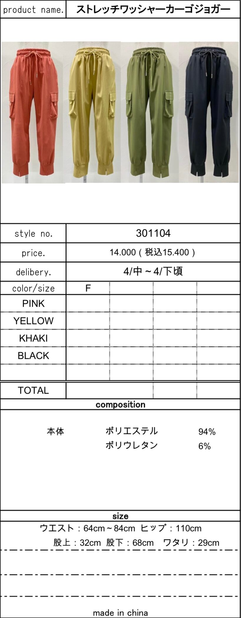 予約販売【 CYAN TOKYO 】ストレッチワッシャーカーゴジョガー(301104)4月下旬頃お届け