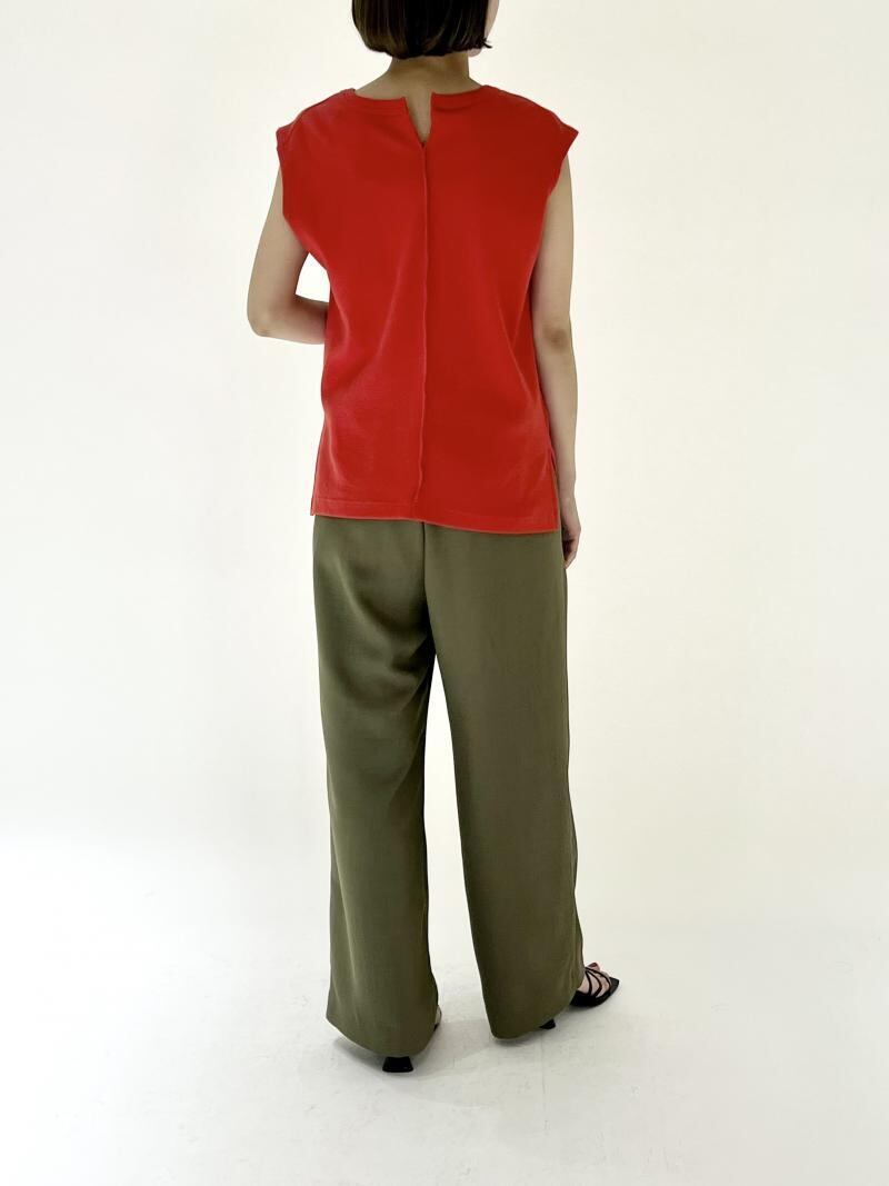 テレコ素材をセレクトすることで表情感を持たせ、また肌離れを良くすることで快適な着心地を実現。シンプルなデザイン且つ前後着用が可能な2WAY仕様に設計し、着回し力の高いアイテムに仕上げました。