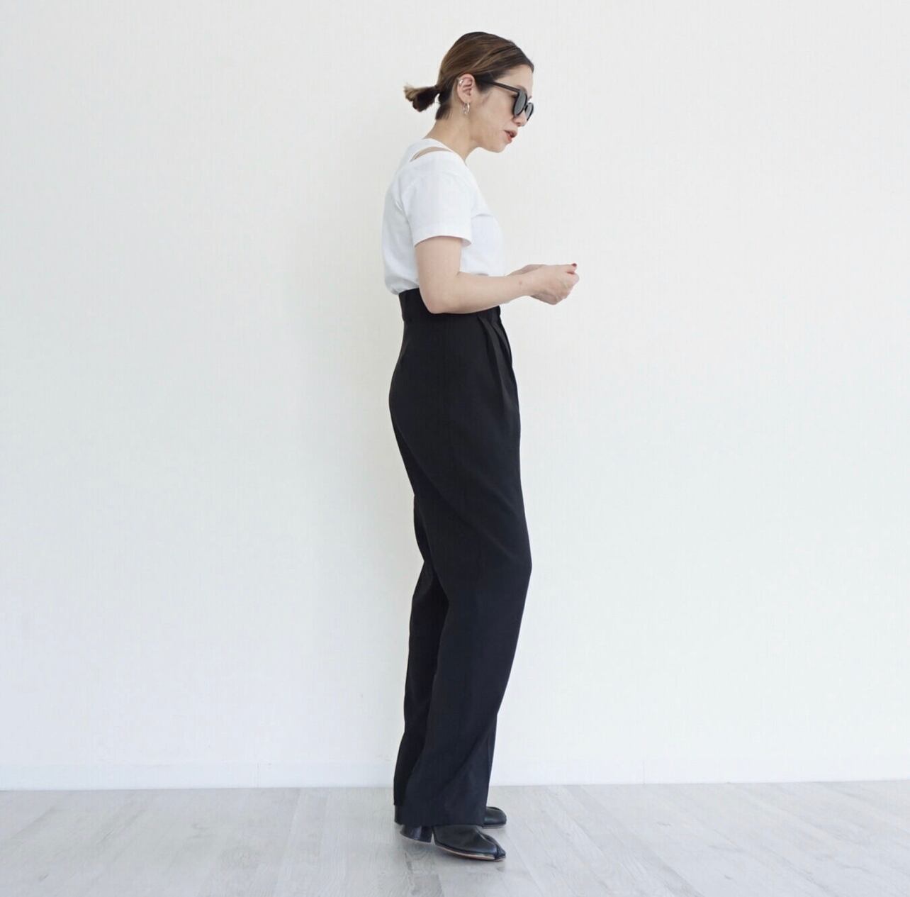 ボディはやや小さめ、着丈は短すぎず、セクシーすぎない肌見せで着やすいデザインになっています。ボトムはパンツでもスカートでも。私は少しモードに着たいので、ブラックのパンツなどでカッコよく着たいなと思い、デザインをしてみました。真夏のシンプルなTシャツなどに飽きた方にチャレンジしてもらいたい女性らしいおすすめのカットソーです。