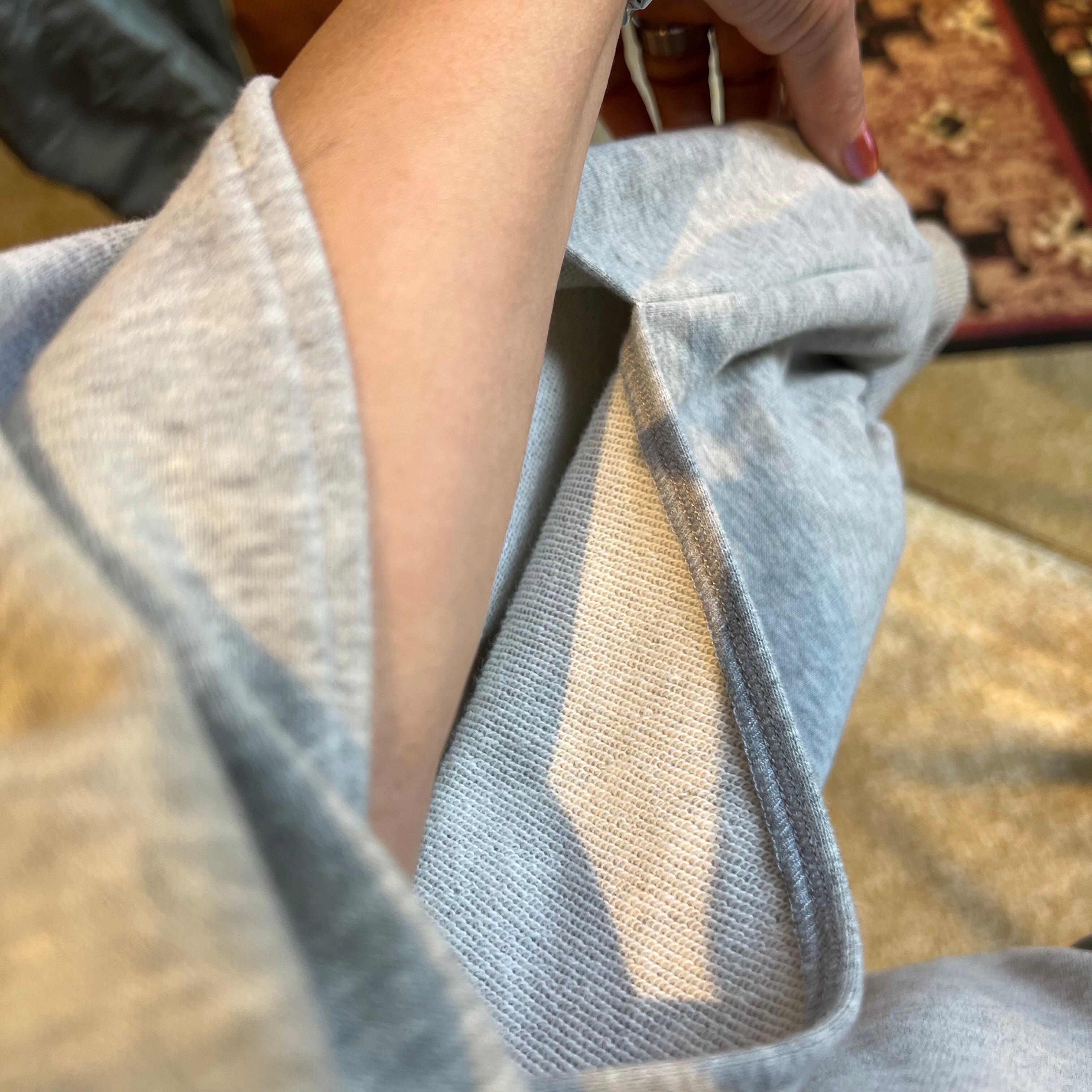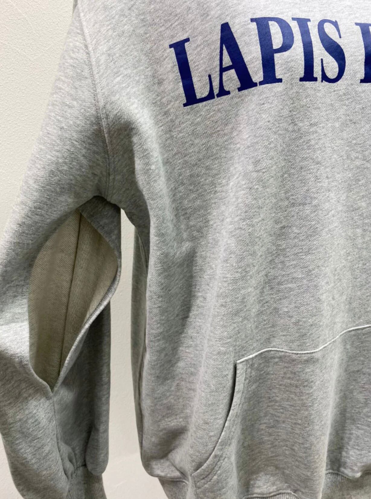 素材は綿100%となりますが、表面がピーチスキン生地のような触り心地よい感触で、一般的なトレーナーより見た目もキレイ見えする短い裏毛の薄手スウェットです。