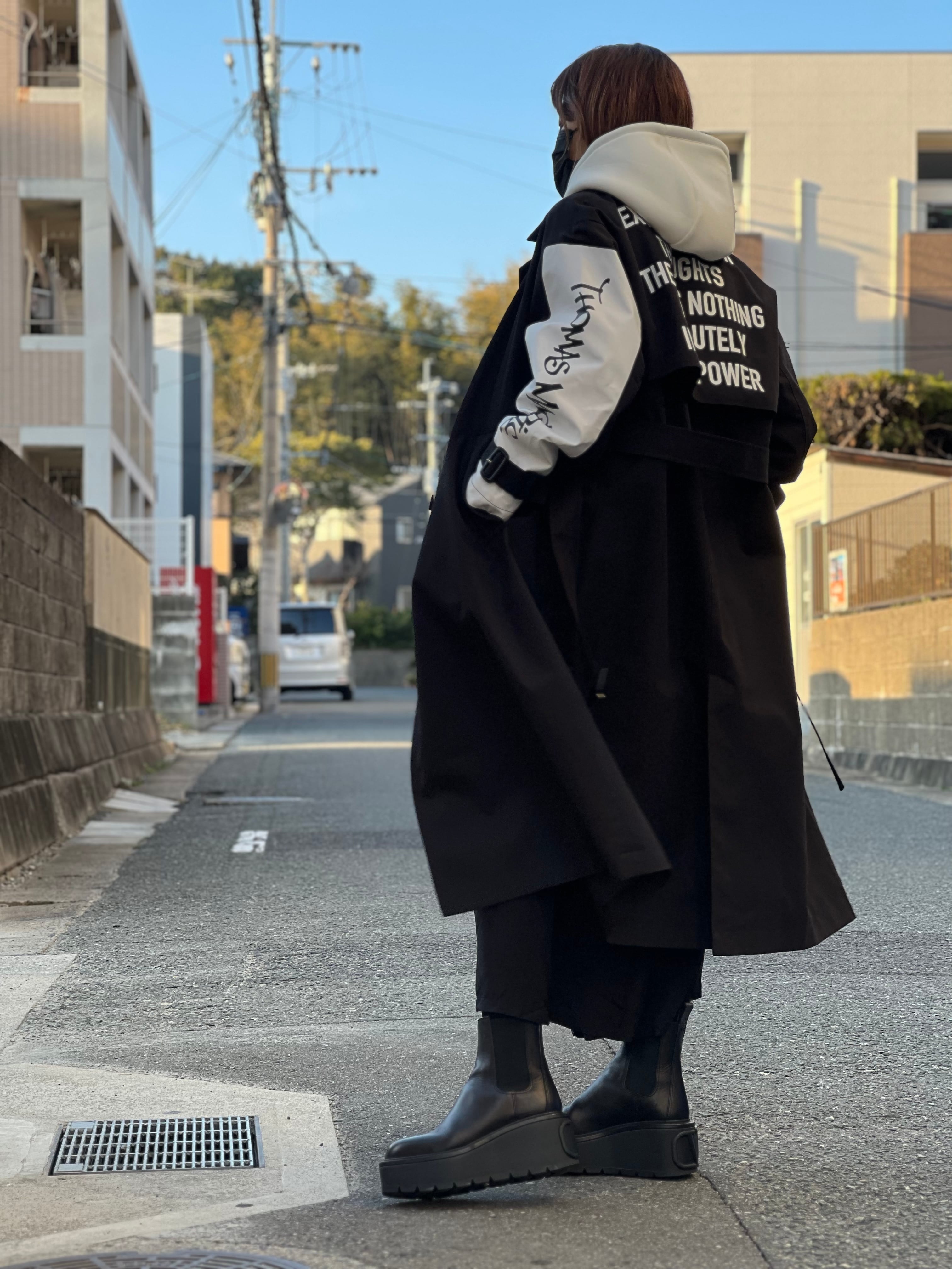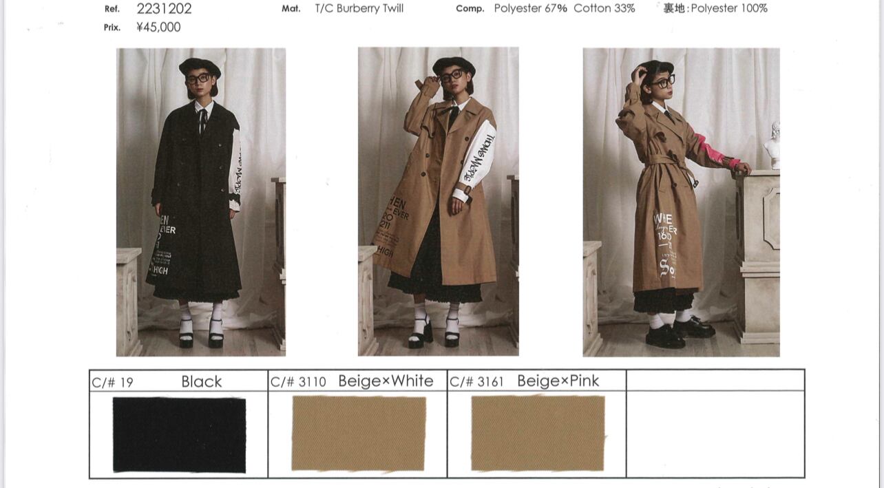毎回定番で出しているトレンチコートはデザイン、生地の変更はなくロゴで変化を付けてきました。