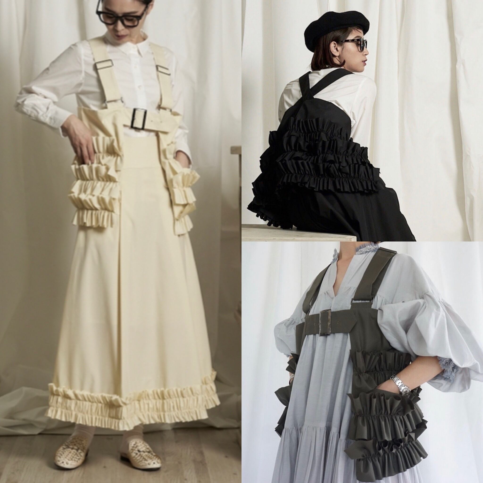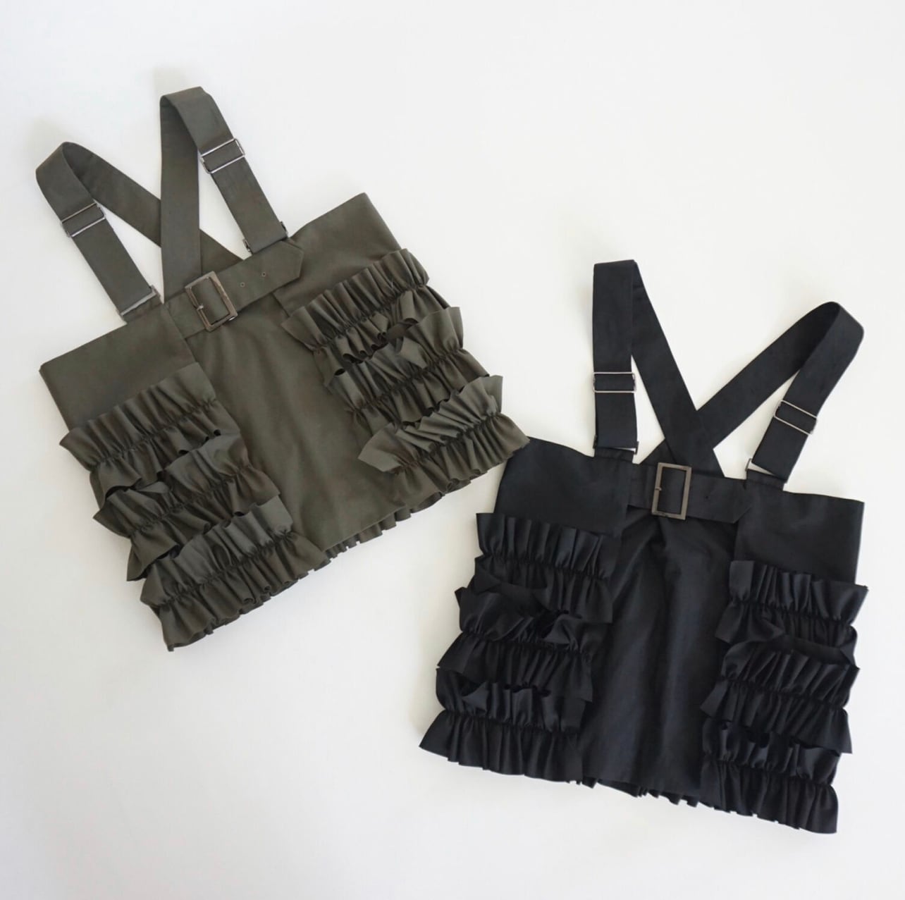 このフリルベストはAライン気味に少し修正できないか検討中です。(未決定)長さはベルトで調整が可能。また胸のベルトでサイズも調節ができます。