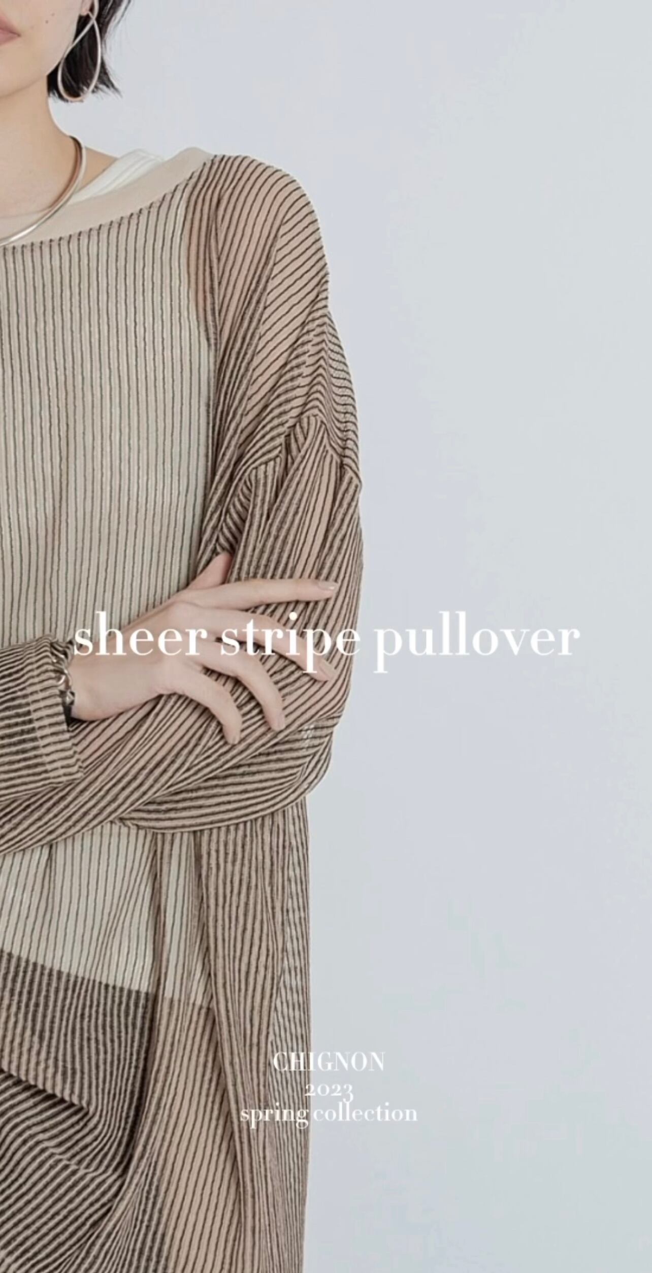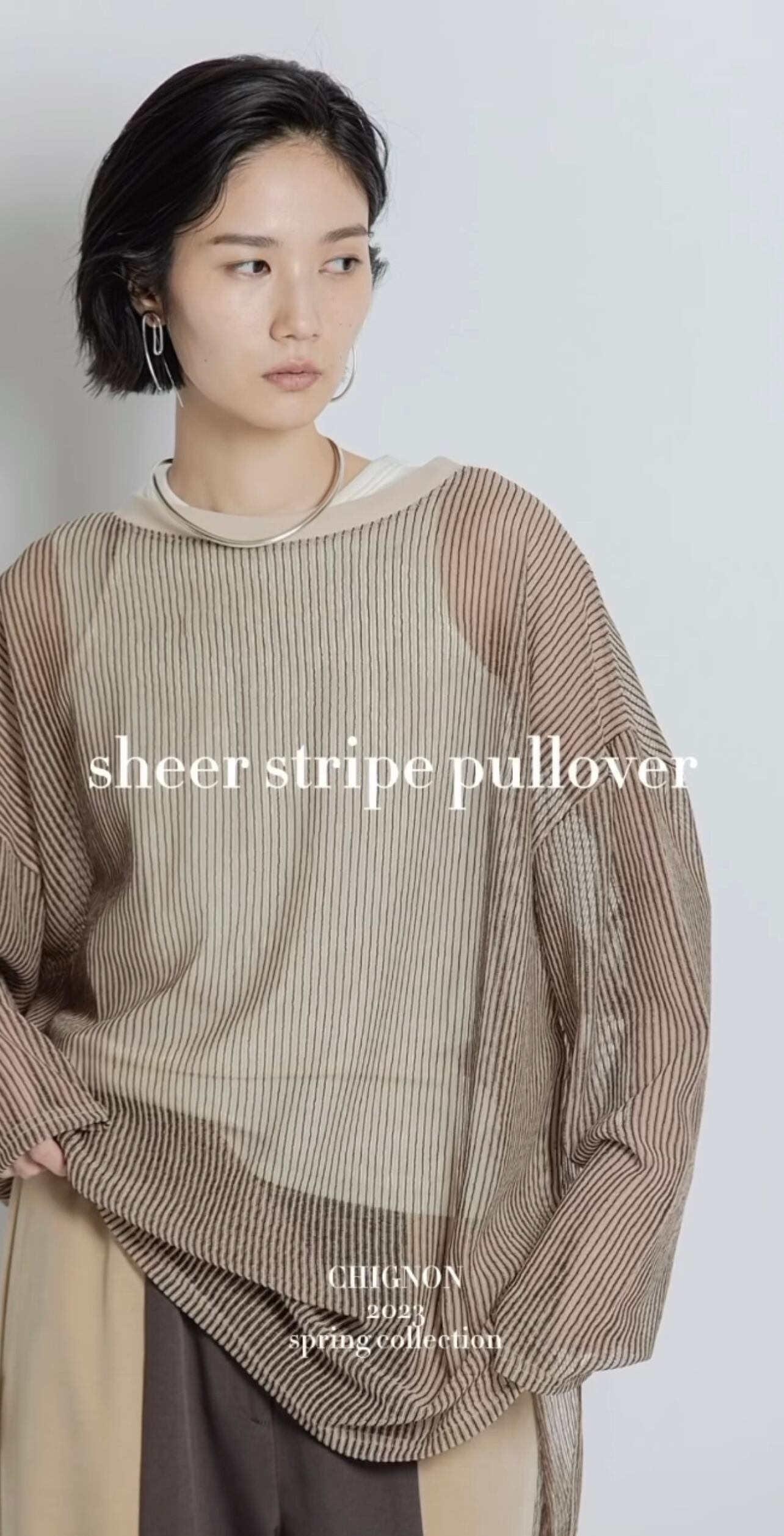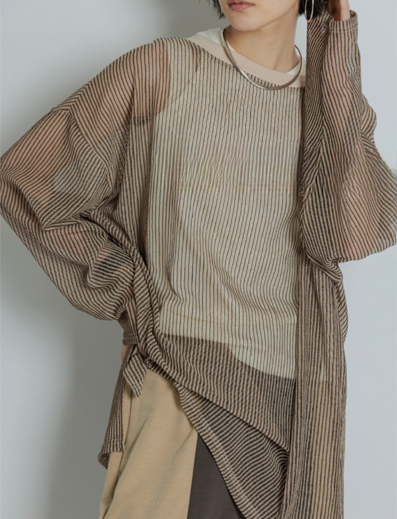 シャリ感と透け感のあるストライプ素材を使用した、ゆるっとしたシルエットのカットソーPOです。