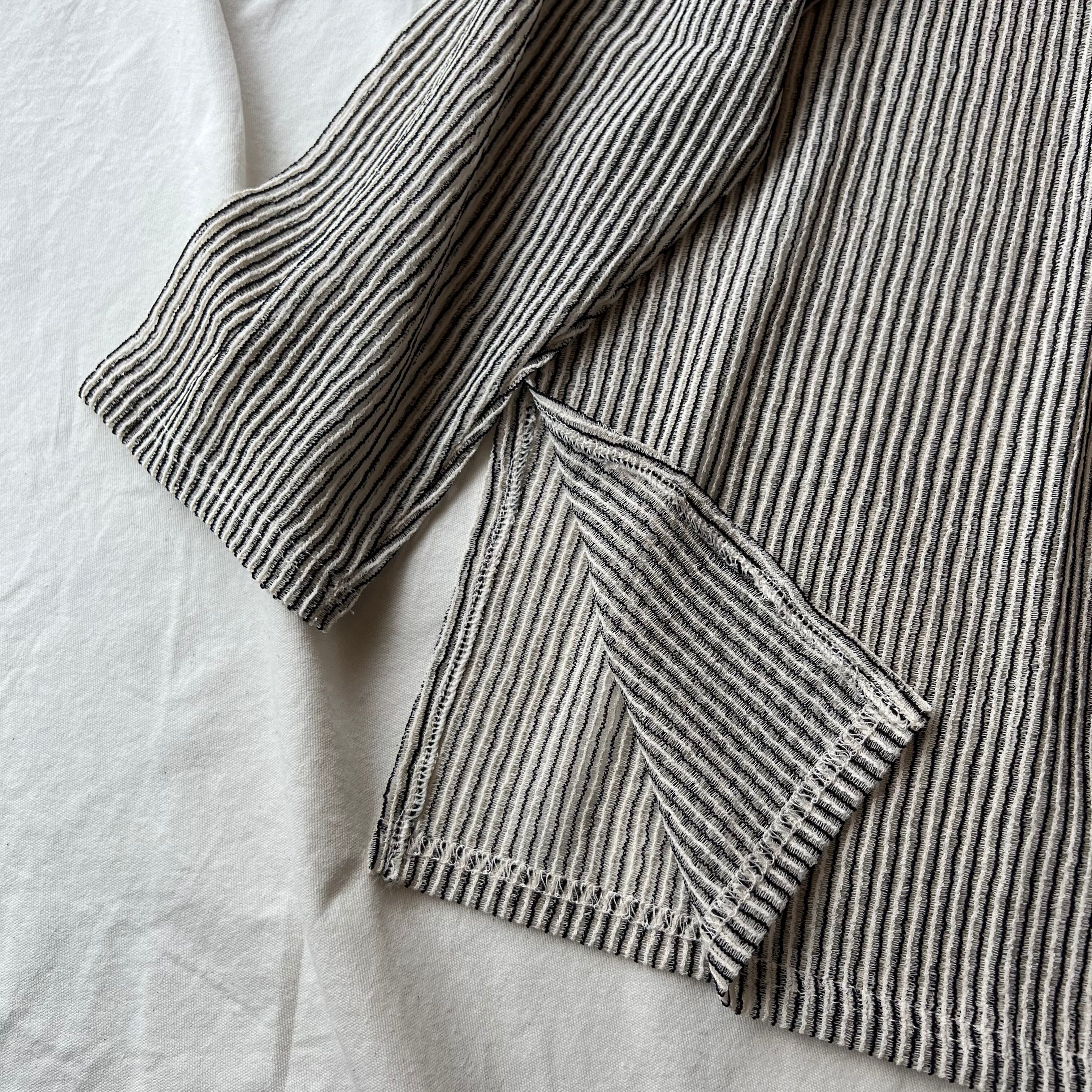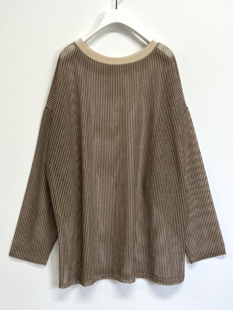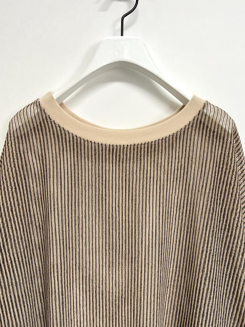 シャリ感と透け感のあるストライプ素材を使用した、ゆるっとしたシルエットのカットソーPOです。