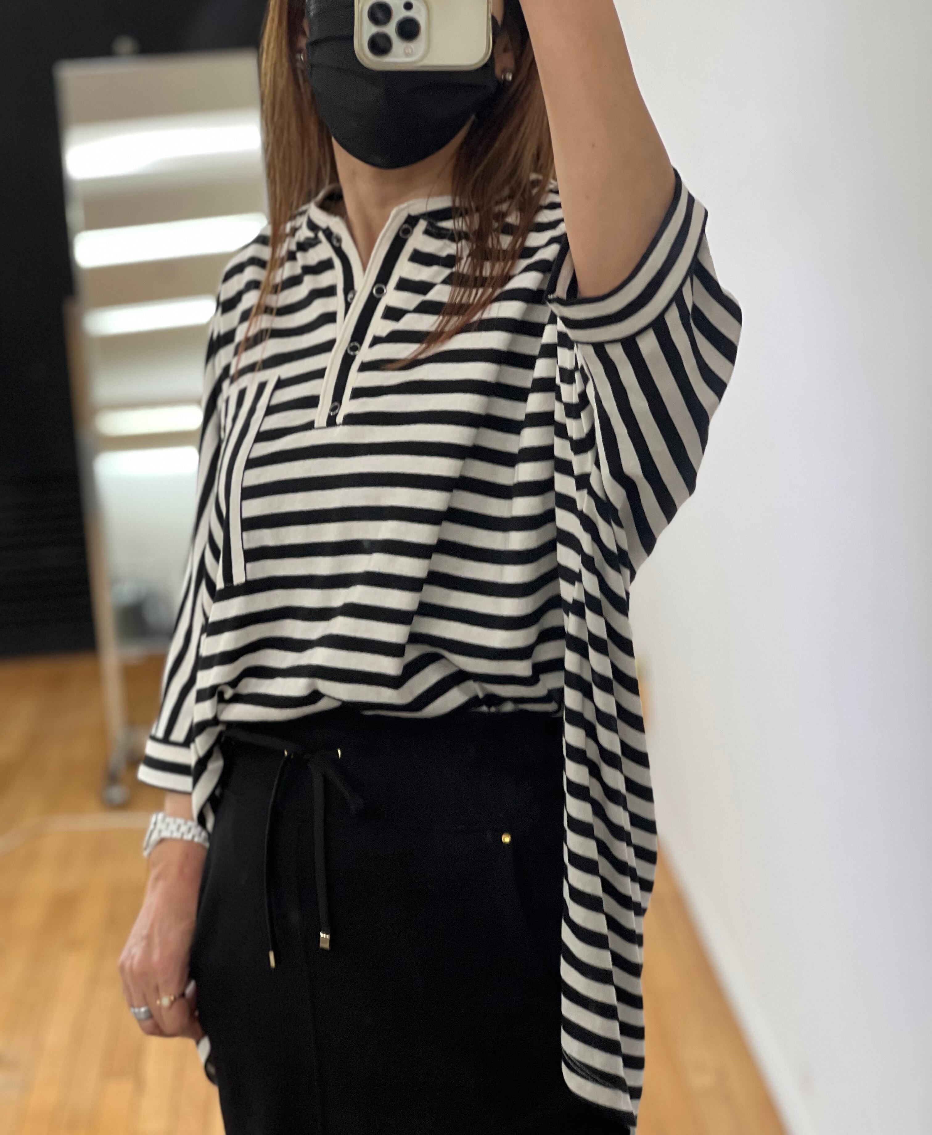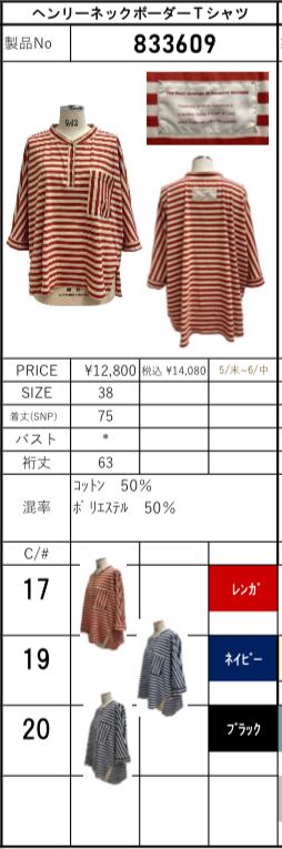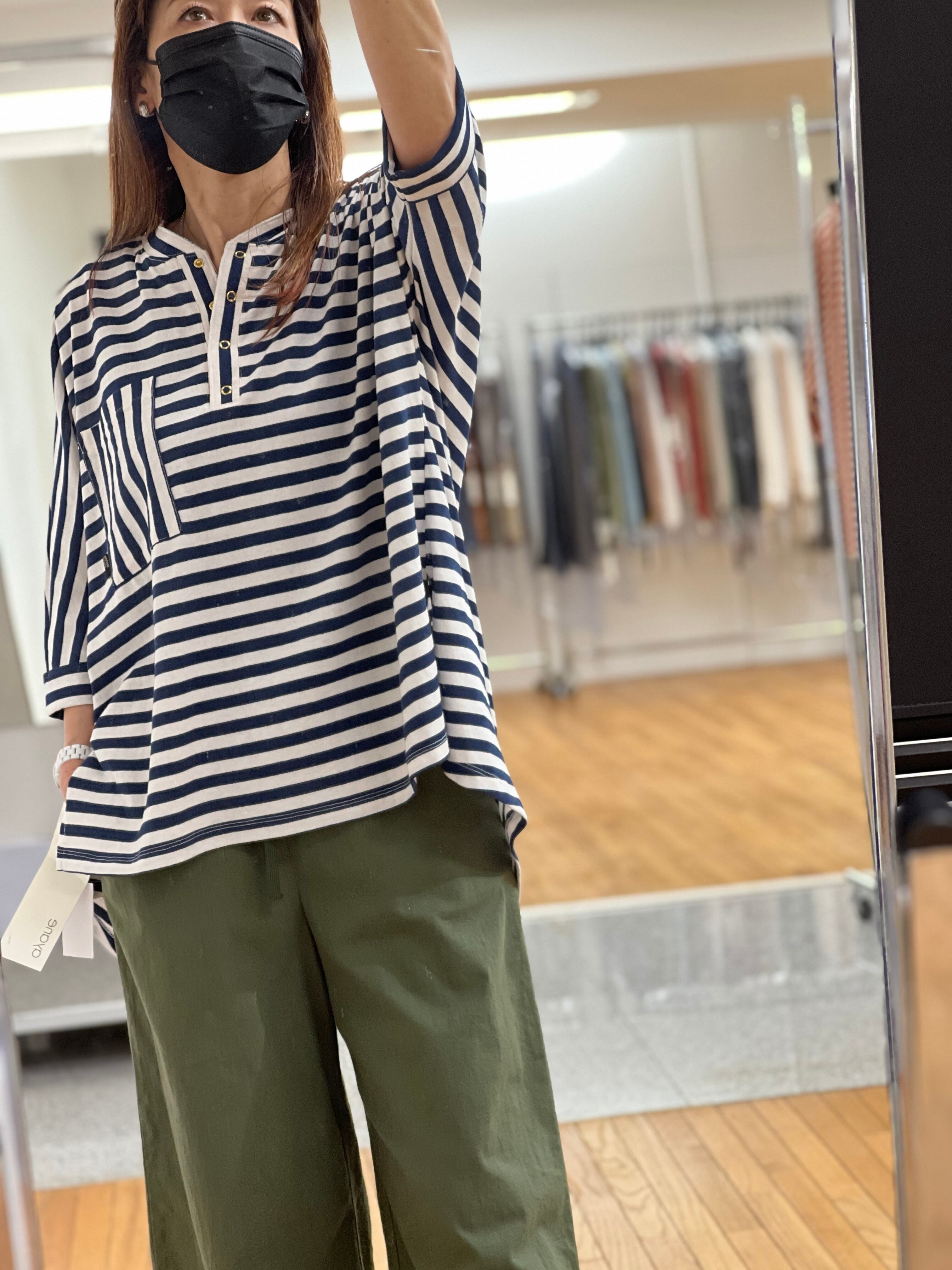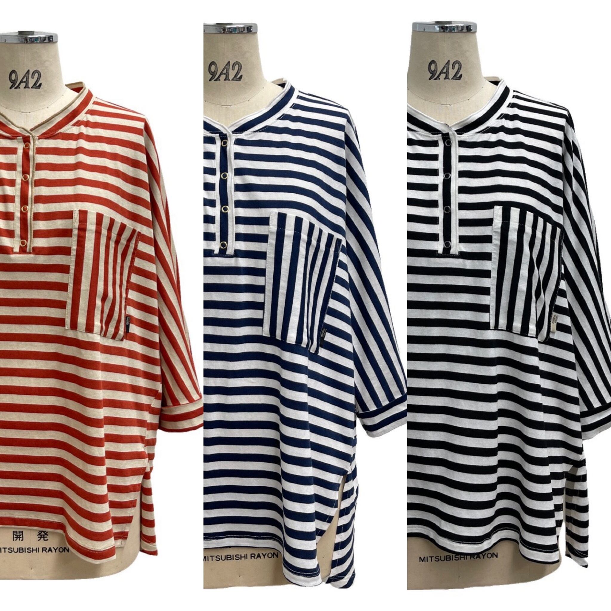 予約販売【 ayane 】ヘンリーネックボーダーTシャツ(833609)