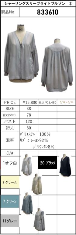 予約販売【 ayane 】シャーリングスリーブライトブルゾン(833610)