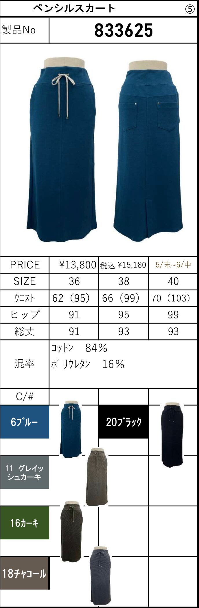 コットン 84% ポリウレタン 16%